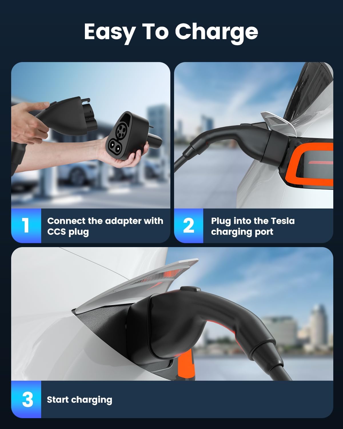 CCS1 to Tesla Charger Adapter, 250kW Supercharger CCS Adaptor, Fit for Model Y/3/S/X, Charge at Level 3 DC Fast Charging Stations (Not for Level1 Level2 EV Charger), NACS Adapter