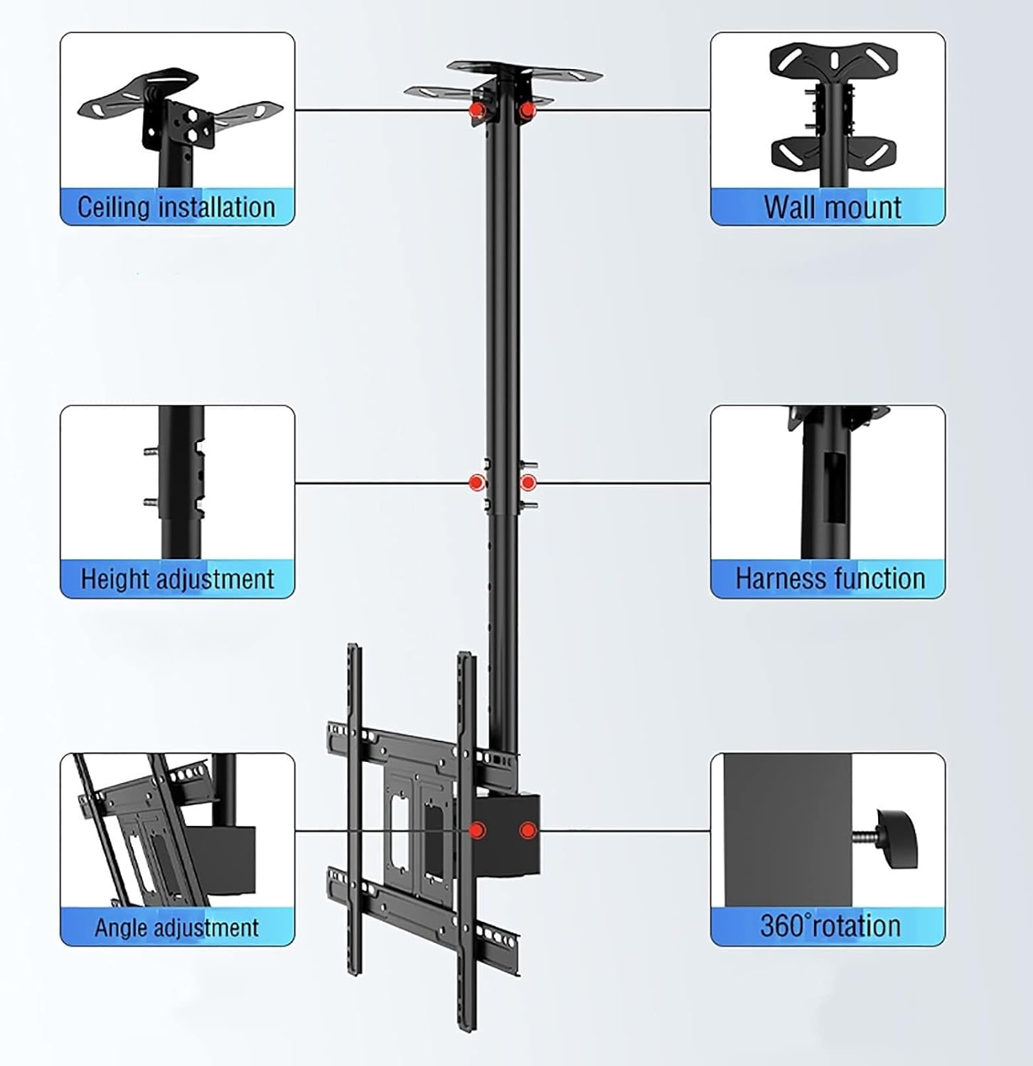 The Ceiling TV Mount Bracket is designed to offer an exceptional, space-saving solution for mounting your 32-65 inch TVs. Whether you prefer wall or ceiling mounting, this versatile TV bracket supports a wide range of installations, making it perfect for both residential and commercial spaces. With a maximum load capacity of 50kg (110 lbs), this mount ensures your TV is securely held in place with superior stability.