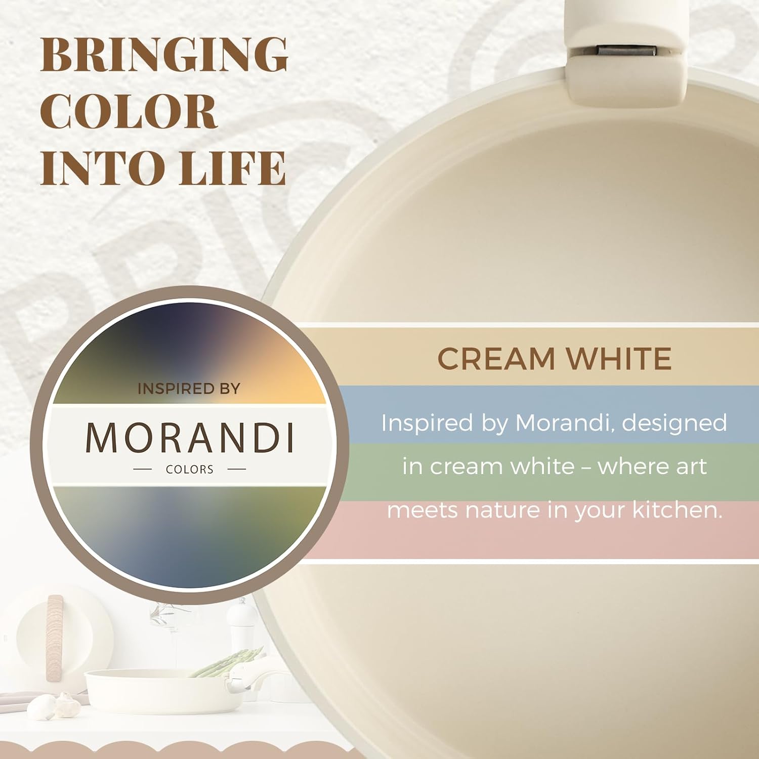 Ceramic Pots and Pans Set with Detachable Handle, Non-toxic Nonstick 8pcs Cookware Set with Die-cast Lids, Dishwasher & Oven Safe, PTFE PFOA PFAS Free, Perfect for College Dorm, Cream White