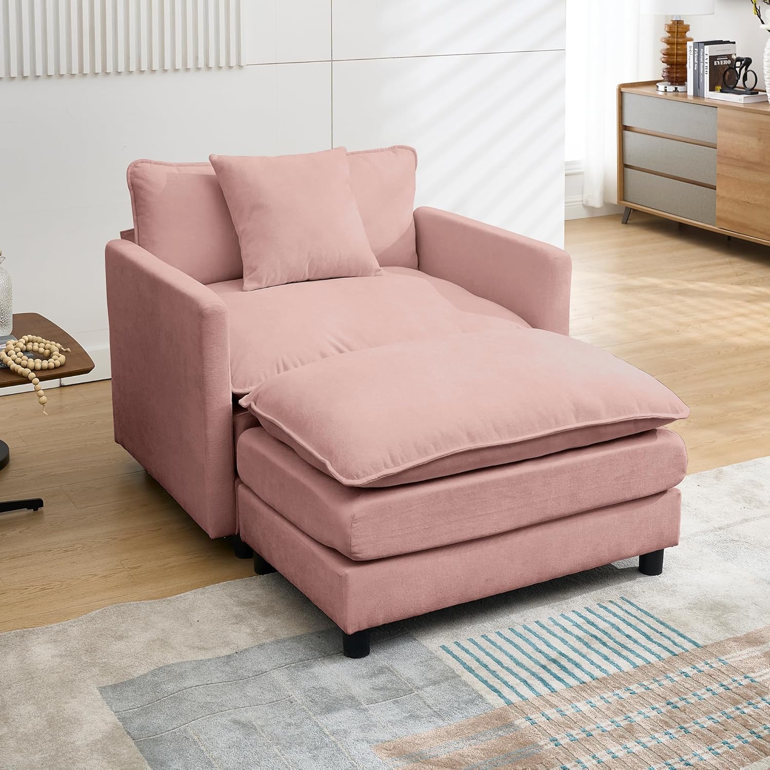 Chair Recliner Indoor with Ottoman, 40 “w Oversized Sleeper, D Corduroy Upholstered Comfort Sofa for Bedroom, Living Room, Office (1, Pink)