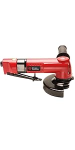 The CP9121BR is the perfect choice for high performance finishing. This 5-Inch grinder comes with an aluminum alloy housing that is rugged yet lightweight for maximum operator comfort. Spiral bevel gearing in angle head provides extended life and smooth low vibration. Powerful .8 hp high performance motor for fast, efficient grinding in tight quarters. Adjustable protective guard allows access into tight spaces. Applications- weld preparation and smoothing, rust removal, debarring and blending of steel. cast iron and aluminum. Spindle size; 5/8;11; 4-Inch through 5-Inch wheel size; free speed: 12000 RPM; average air consumption: 13 cfm; air inlet thread: 1/4-Inch NPTF; minimum hose size: 3/8-Inch; sound dBA: 85; length: 9.3-Inch; weight: 4.2 pounds.