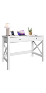 ChooChoo Computer Desk with USB Charging Ports and Power Outlets, 39" White Desk with Drawers, Small Study Writing Table with Stable X Frame for Home Office