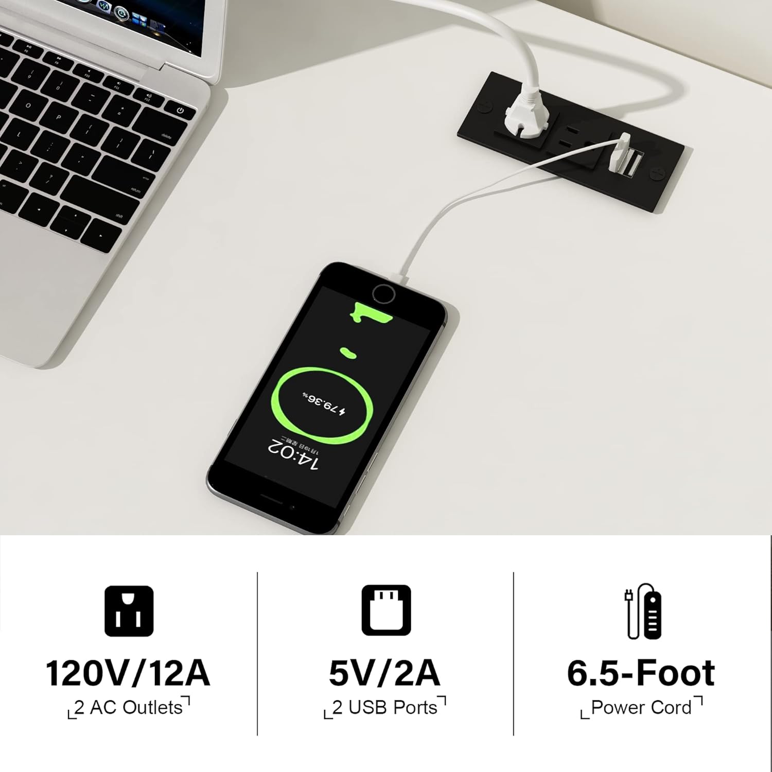 The computer desk includes a built-in power strip with 2 outlets & 2 USB Ports providing convenience for charging your gaming gear, tablet or smartphone.