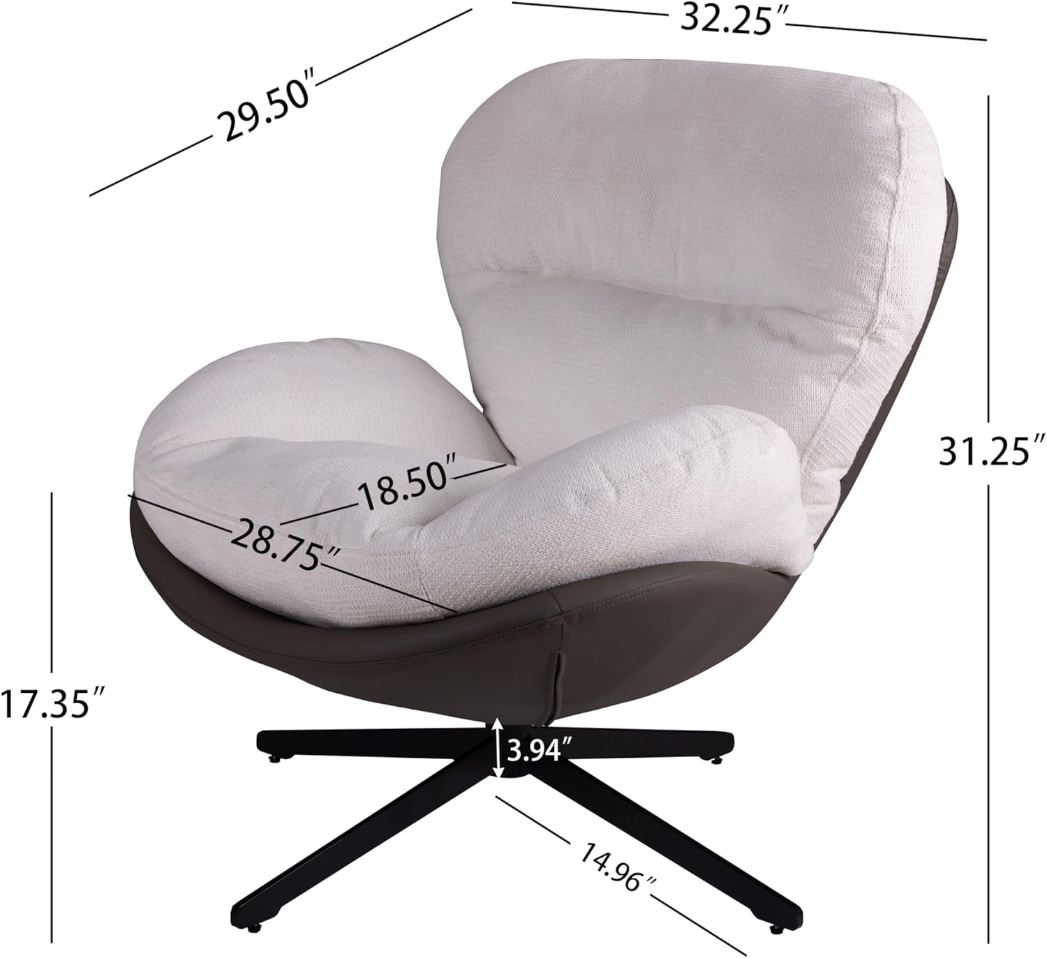Christopher Knight Home 360° Swivel Accent Chair, Modern Chenille Lounge Chair with Faux Leather and Black Metal Base Frame, Reading Chair for Small Spaces, Living Room, Bedroom, Office, White