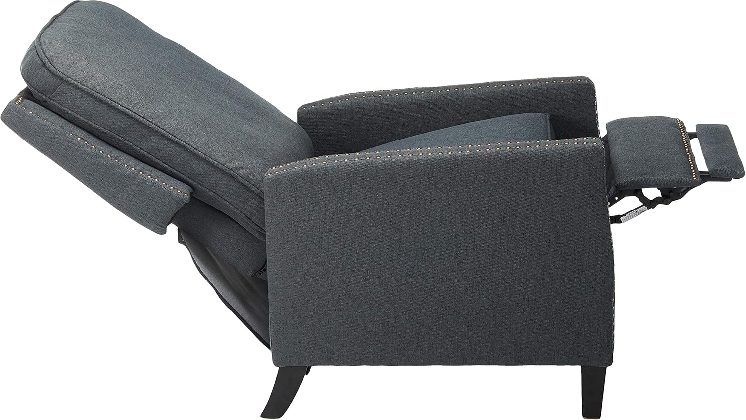 Turn your space from ordinary to extraordinary. With plush upholstery and an exquisite nailhead trim, this recliner isn't just comfortable but stylishly chic. Enjoy cozy movie marathons or relax with the assurance that your interior space remains trendy. Finished with a reclining pushback function, this chair offers quality, comfort, and style all rolled into one. You'll be hard-pressed to move from this cozy spot!