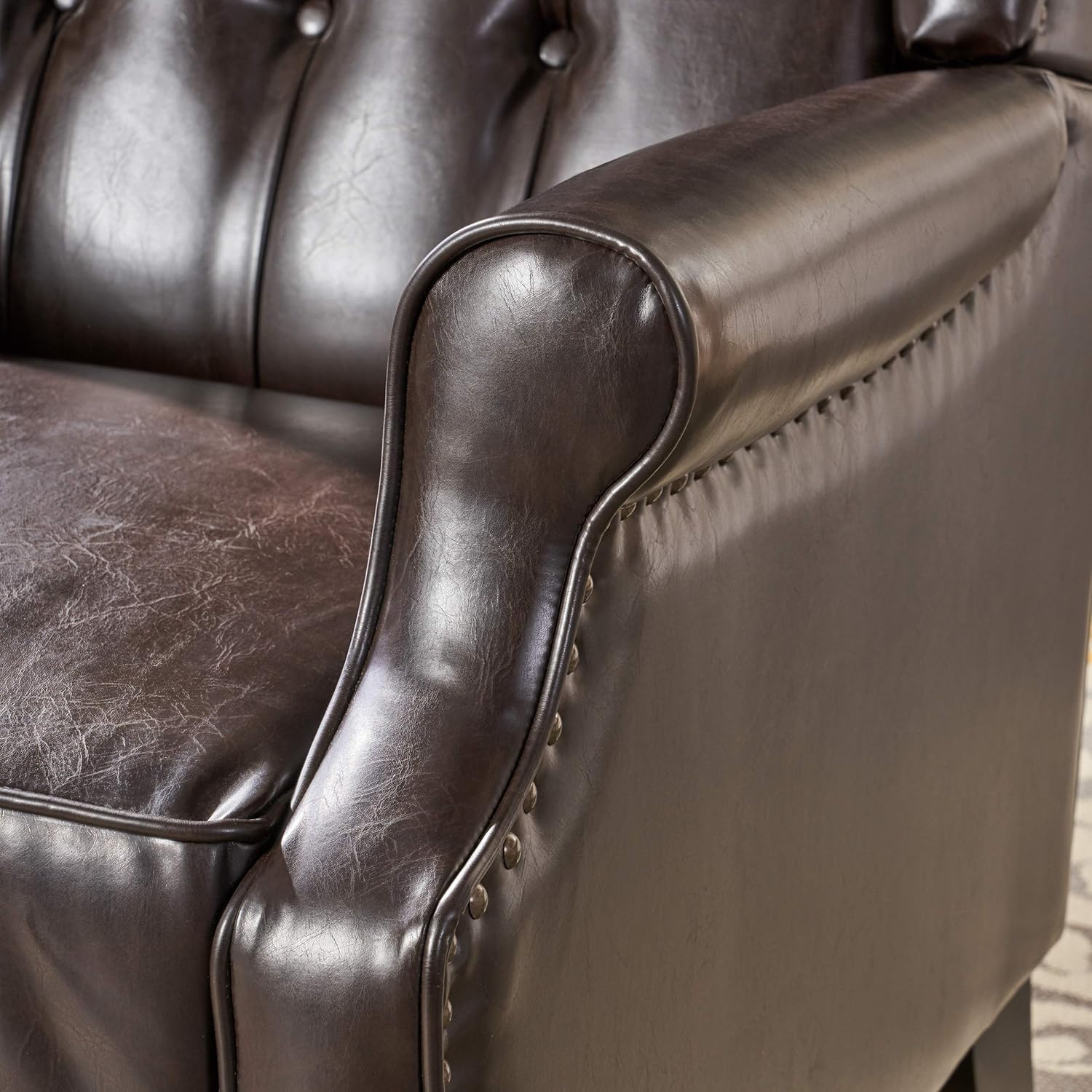 Christopher Knight Home GDFStudio Elizabeth Tufted Bonded Leather Recliner, Vintage Reclining Reading Armchair, 28.5D x 34.5W x 41H in, Brown