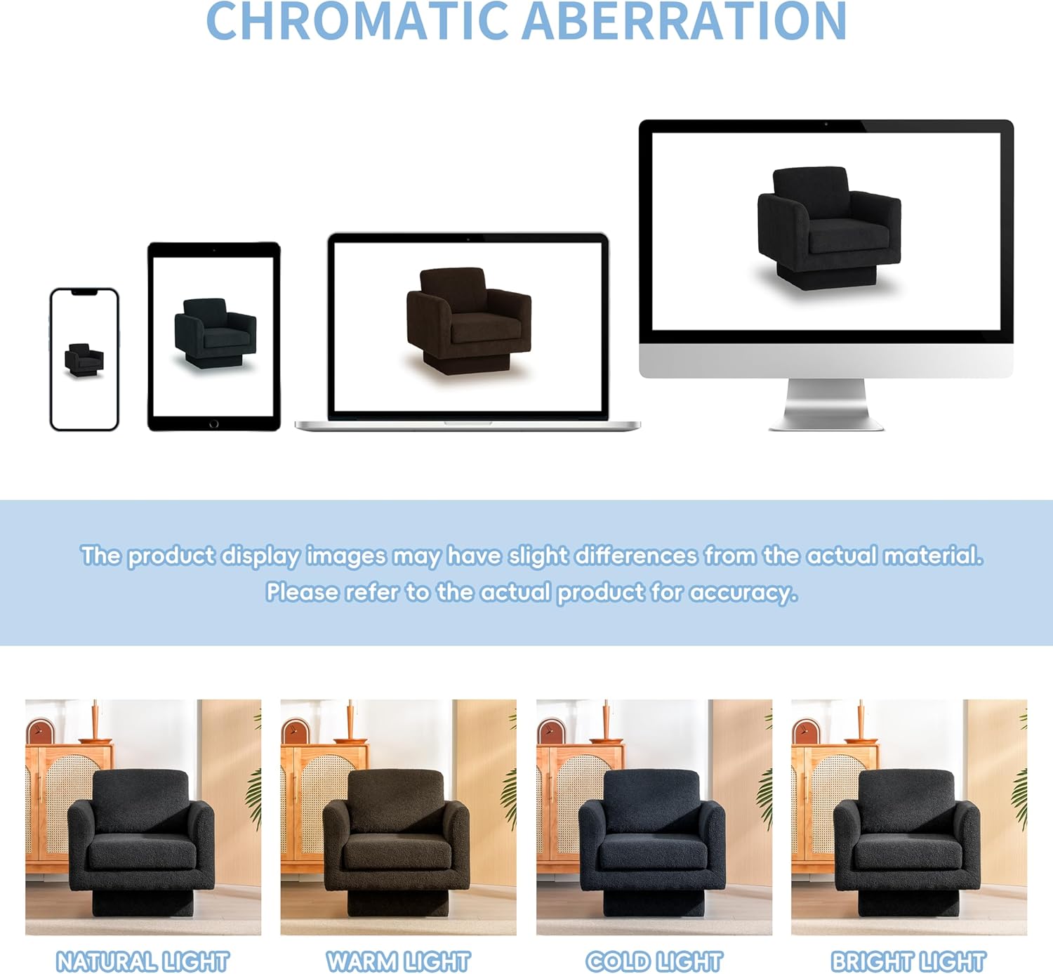 Upgrade your living space with this swivel accent chair, designed for both comfort and style. Featuring a 360-degree swivel base, it allows effortless movement, making it perfect for lounging or conversation. Upholstered in ultra-soft Sherpa boucle fabric, this chair offers a cozy, textured feel, while the sturdy wooden frame ensures long-lasting durability. The curved armrests provide ergonomic support, adding to its modern elegance. A 6-inch thick seat cushion delivers plush comfort for extended seating, making it an excellent choice for a swivel lounge chair in a living room, bedroom, or reading nook. Assembly required.