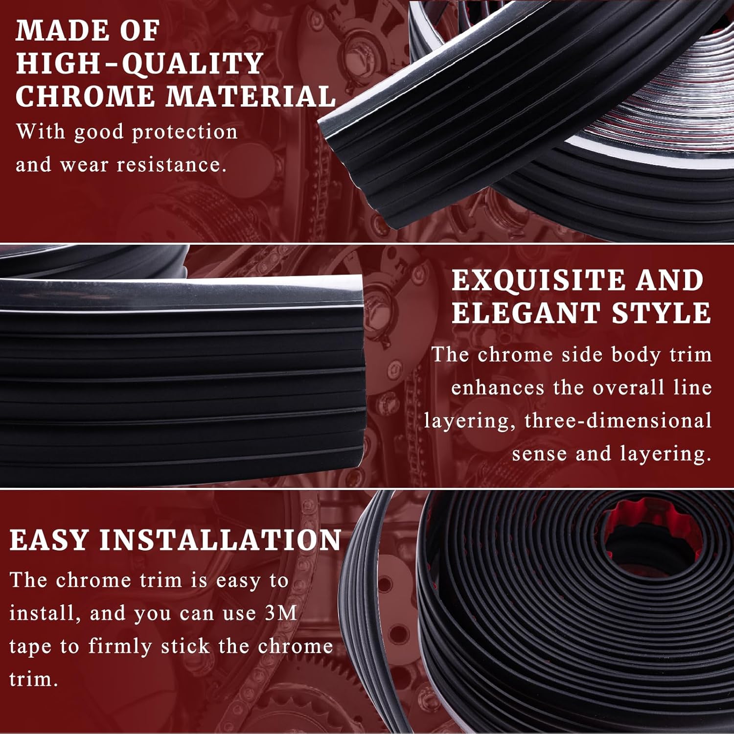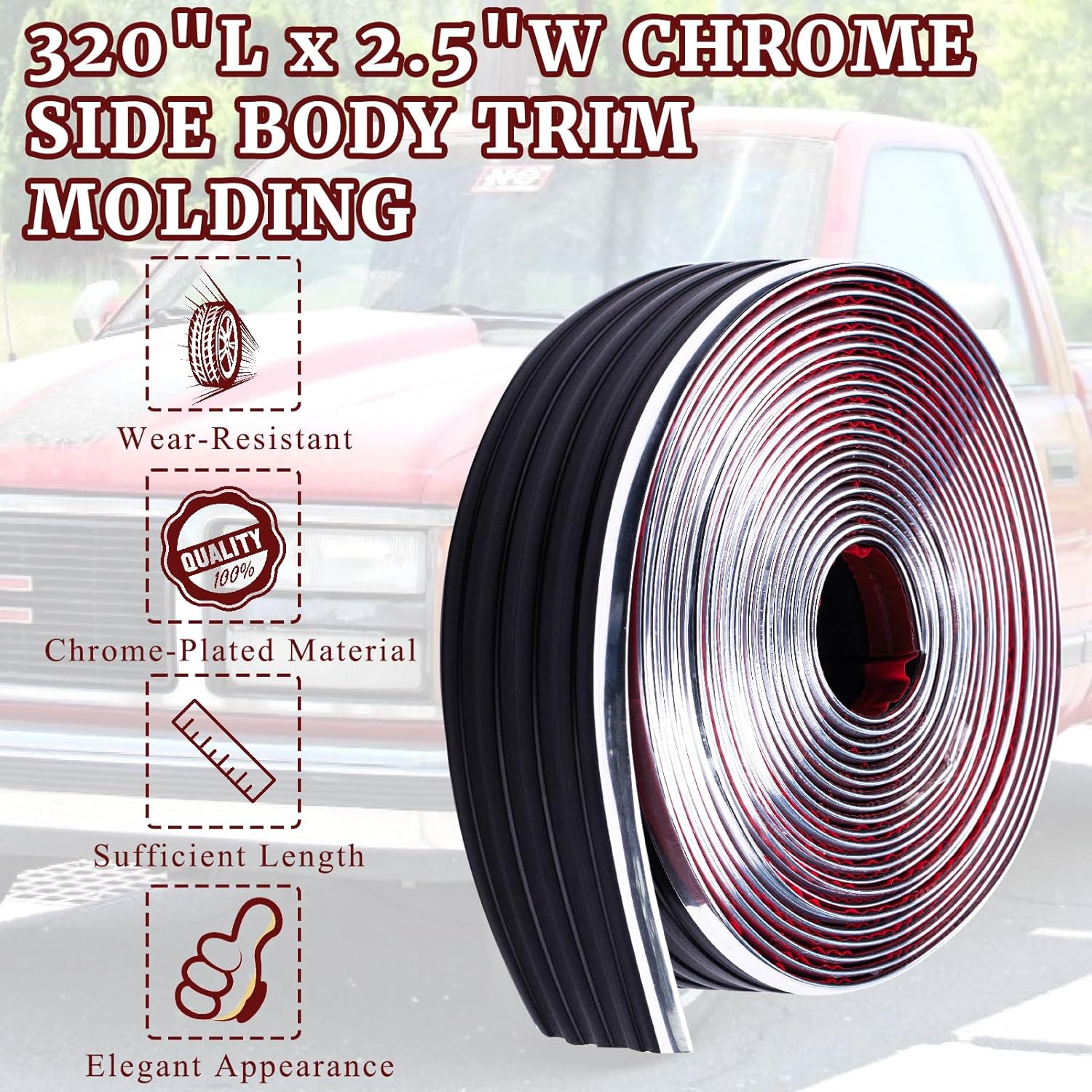 Chrome Side Body Trim Molding Replacement Compatible with 1988-1998 Chevy GMC Pickup C1500 C2500 C3500 K1500 K2500 K3500 Suburbans Tahoes Silverado Blazers Service Body Truck Accessories 320"L 2.5"W