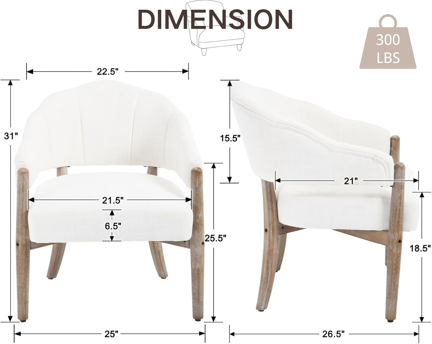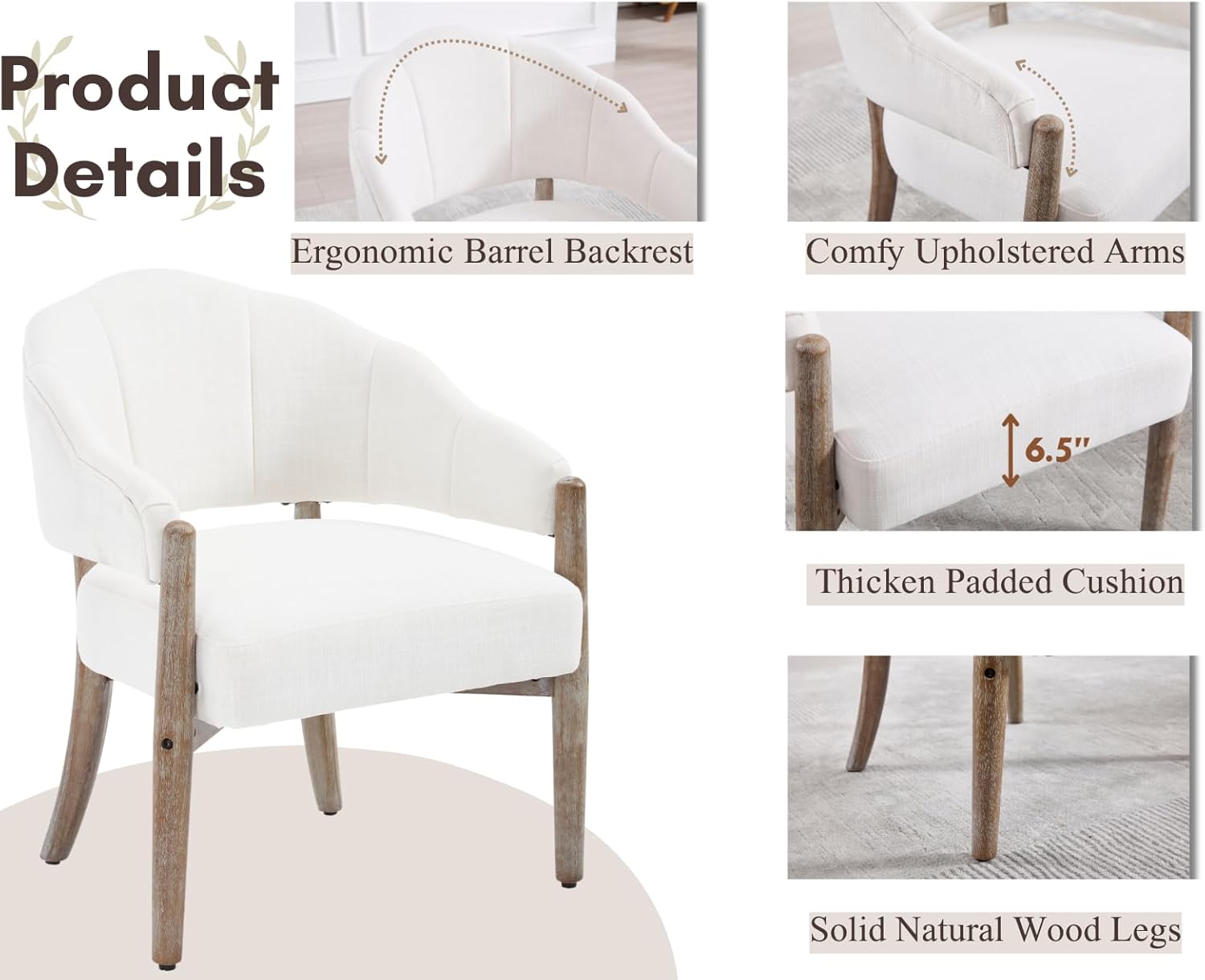 CIMOTA White Accent Chairs Set of 2 Farmhouse Fabric Barrel Chairs Linen Upholstered Armchairs with Wood Legs, 21.5" Wide Comfy Reading Chairs Side Sitting Chairs for Living Room/Bedroom/Makeup