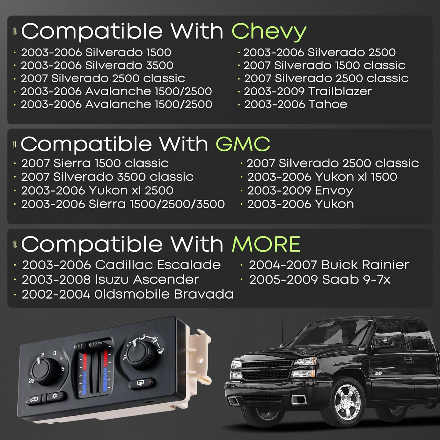 Climate Control Module Fit for Chevy Silverado 1500/2500/3500 Avalanche Suburban Tahoe Trailblazer GMC Sierra 1500/2500/3500 Yukon XL Envoy More 599-210XD AC Heater HVAC Panel
