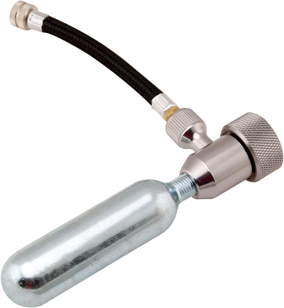 Flexible Nozzle Extender Tube makes it easy to connect the metal air chuck with your tire stem. CO2 Canisters attach quickly and securely to the air chuck. Twist on and off to control flow volume on the Air Chuck.