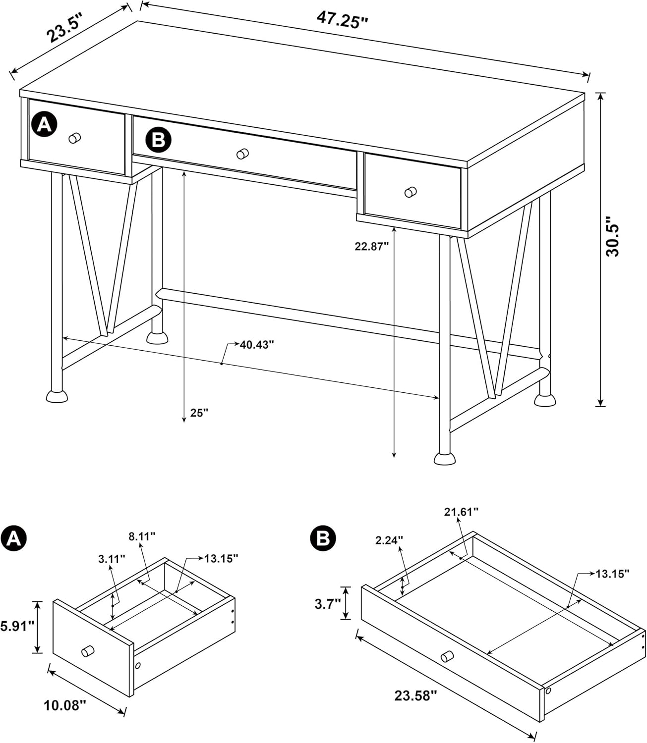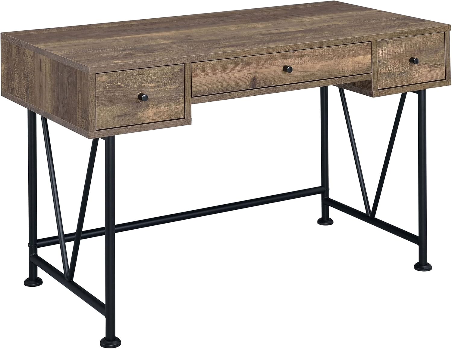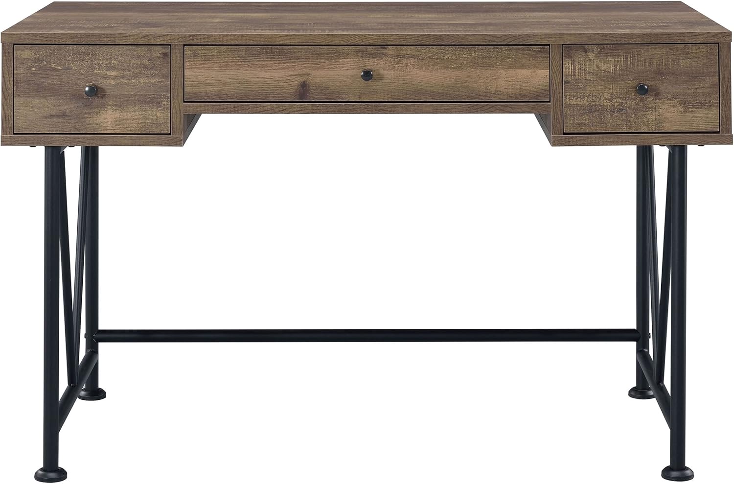 Coaster Furniture Analiese Farmhouse 3 Drawer Home Office Writing Desk Black Metal Base Rustic Oak Brown 802541