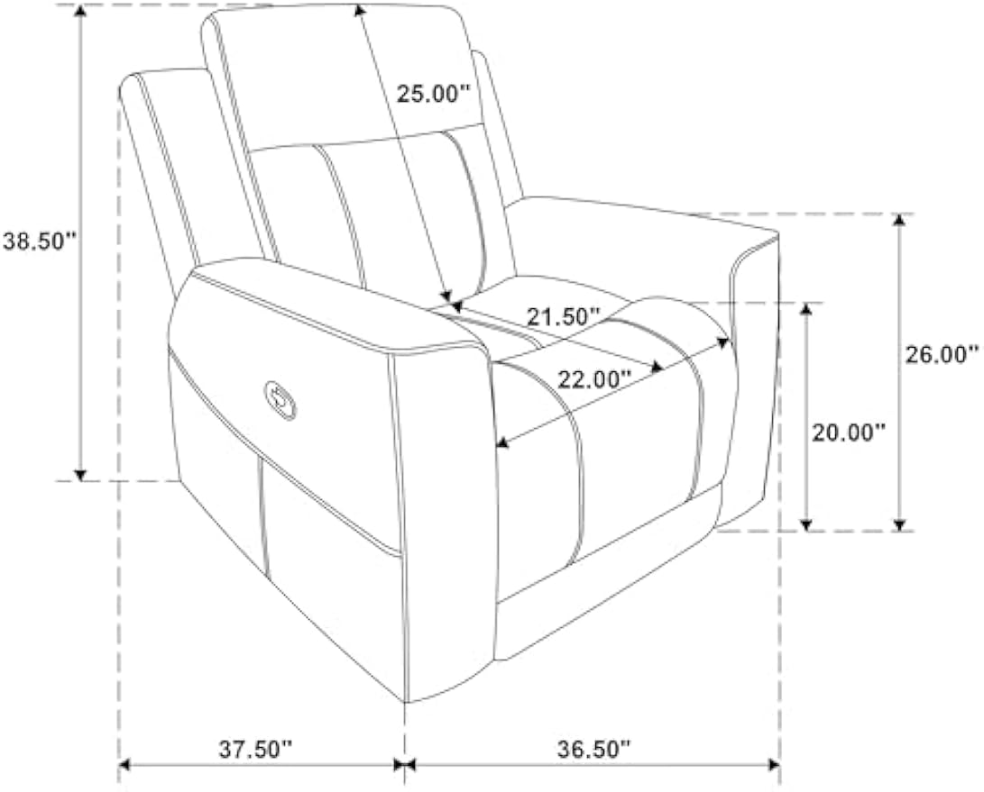 - Rocker Recliner Seat Dimensions: 20 inches high x 22 inches wide x 20.75 inches deep