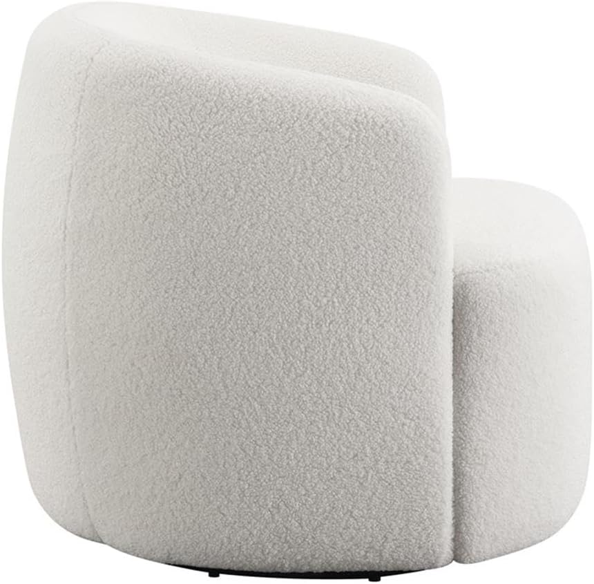 Introduce sophisticated comfort to your home with this swivel accent chair, designed with a sculptural barrel-like design that makes a statement in any room. Wrapped in soft faux sheepskin upholstery with an elegant ivory finish, it blends seamlessly into contemporary style spaces. A hidden swivel mechanism allows smooth 360-degree rotation, while the attached cushions and tight seat provide lasting support. Crafted with a durable wood frame, this upholstered swivel chair is perfect for enhancing your living room furniture with both style and function.