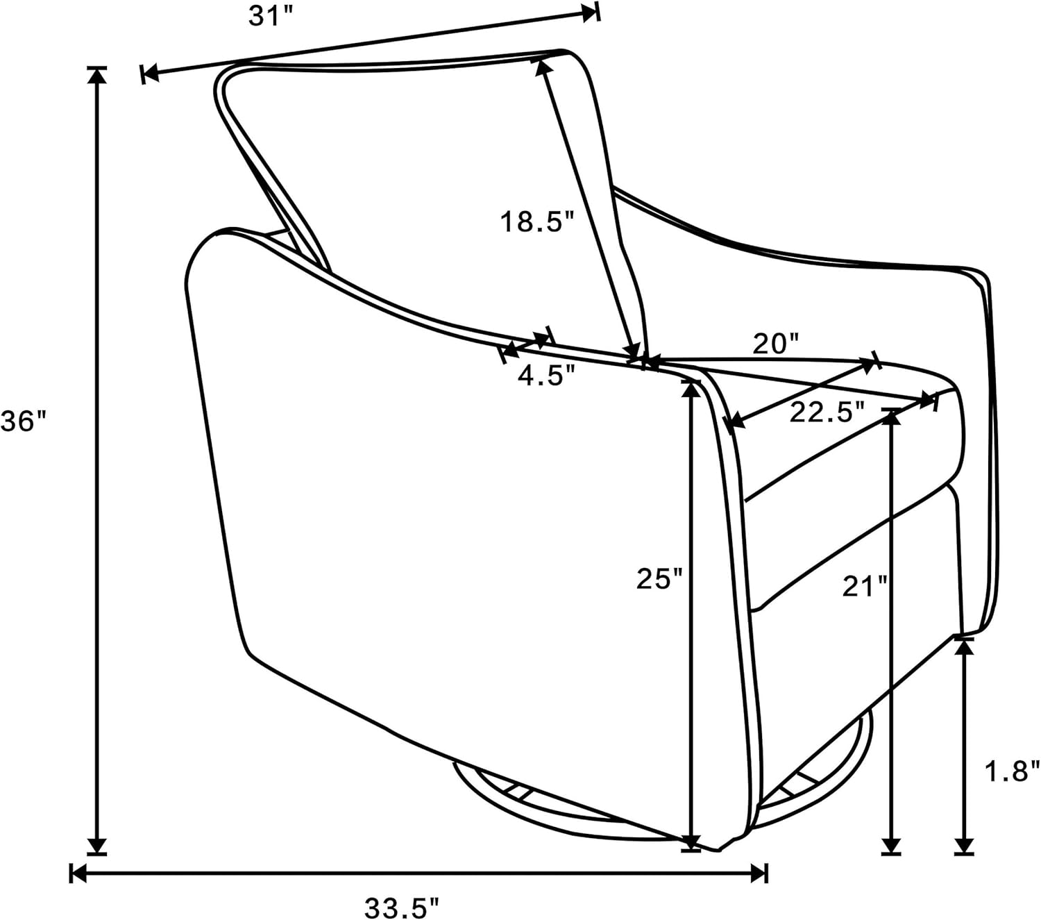 - Swivel Glider Chair Seat Dimensions: 21 inches high x 22.5 inches wide x 20 inches deep