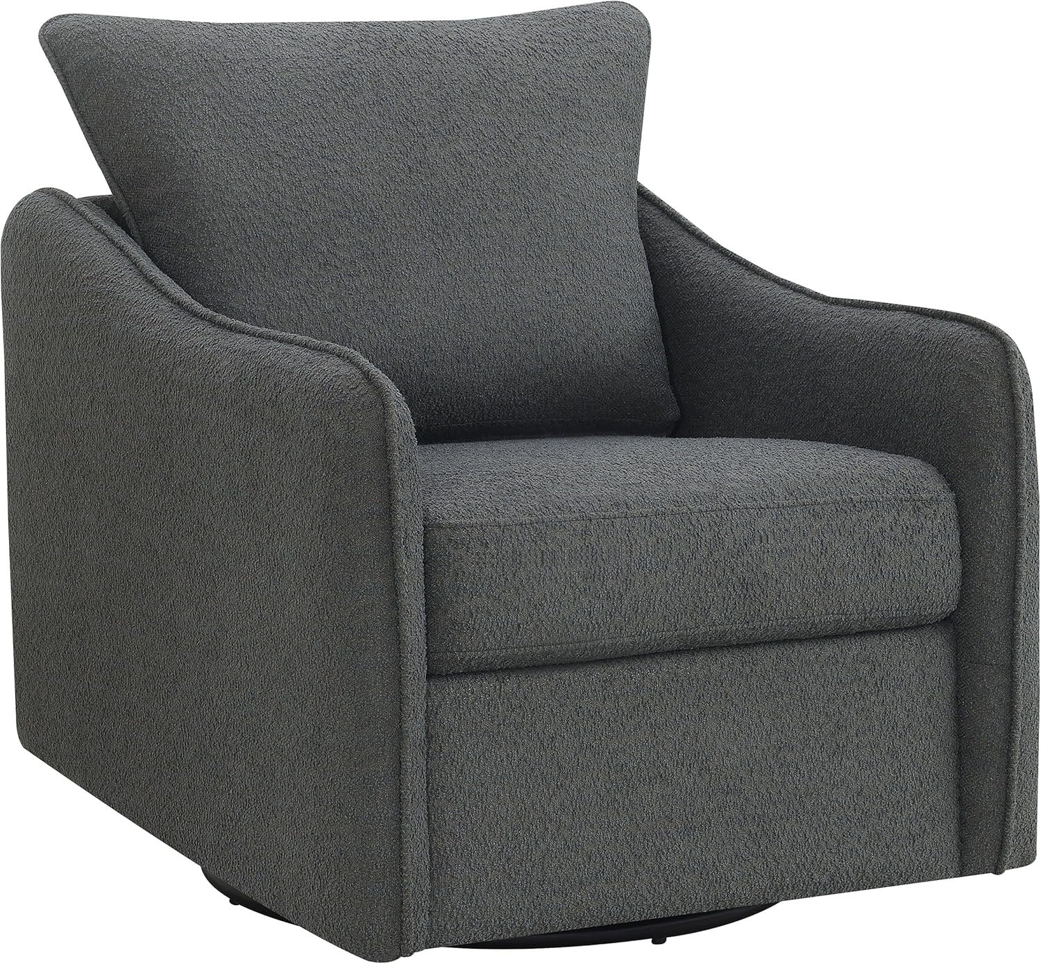 Coaster Home Furnishings - Madia - Upholstered Accent Chair with Sloped Arms, 360-Degree Swivel Base and Padded Cushion - Living Room - Charcoal - 903393