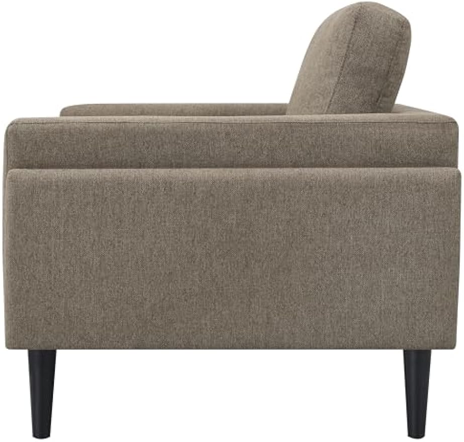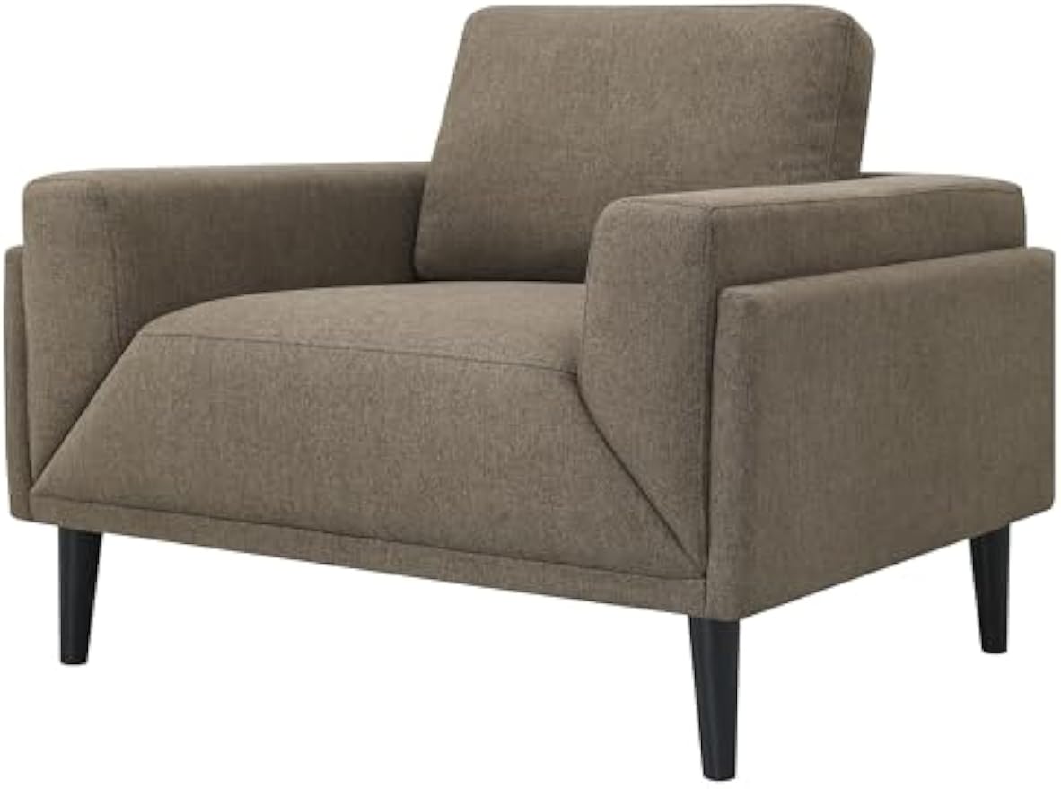 This accent chair with brown upholstery adds a modern touch to any living room with its sleek contemporary style. Featuring a foam seat and padded back, it offers both comfort and support, making it perfect for long hours of relaxation. The track arms and layered frame construction provide durability and sophistication. With its compact design, this upholstered accent chair is ideal for small spaces, making it a versatile addition to your home furniture collection.