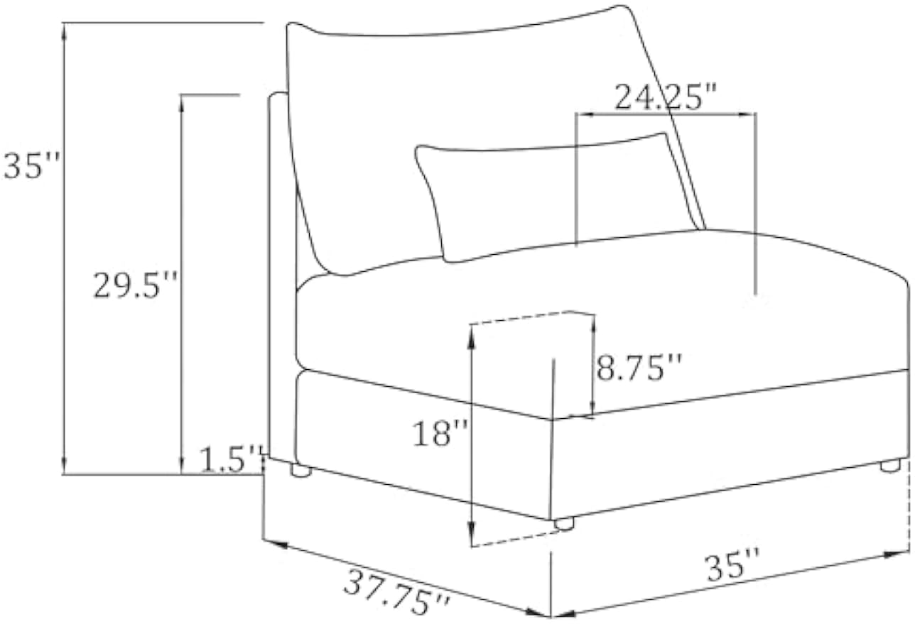 - Armless Chair Seat Dimensions: 18 inches high x 35 inches wide x 24.25 inches deep