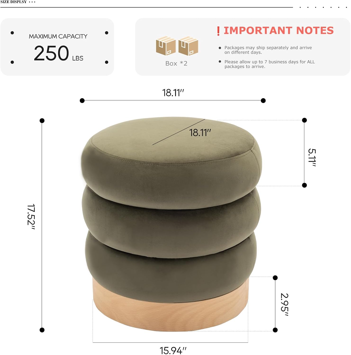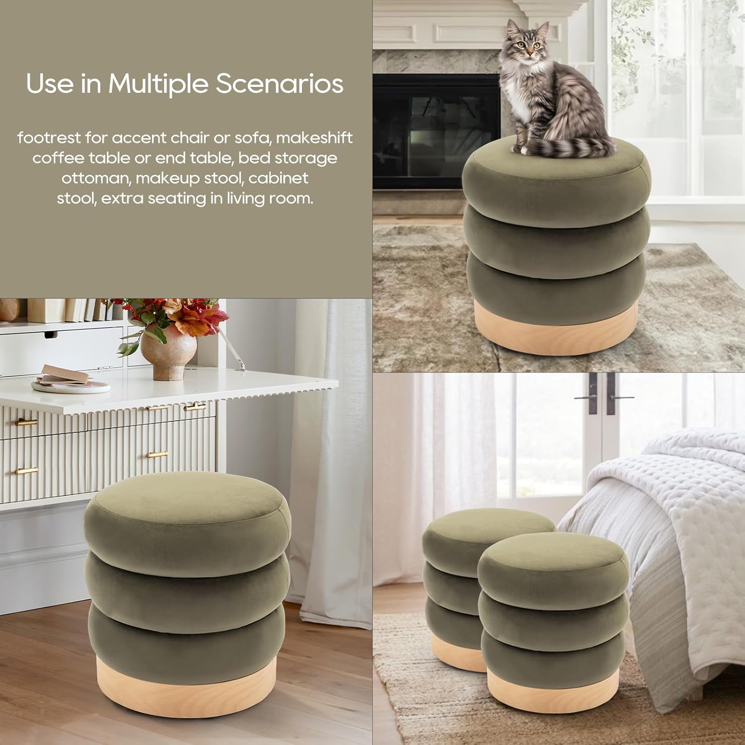 COLAMY Velvet Ottoman Footstool, Tufted Modern Foot Rest Stool with Wood Base for Living Room, Bedroom, Desk, Round Versatile Side End Table, Pouf, Makeup Seat,2pcs,Green