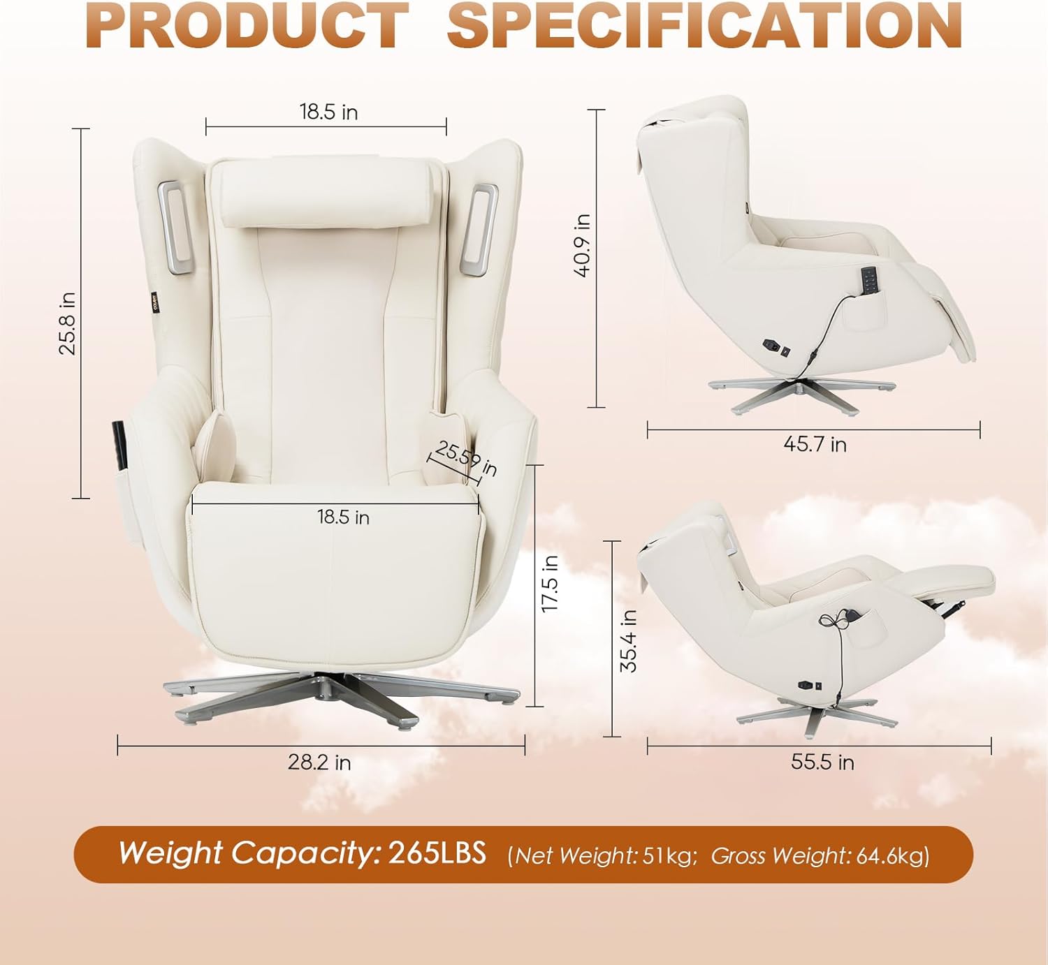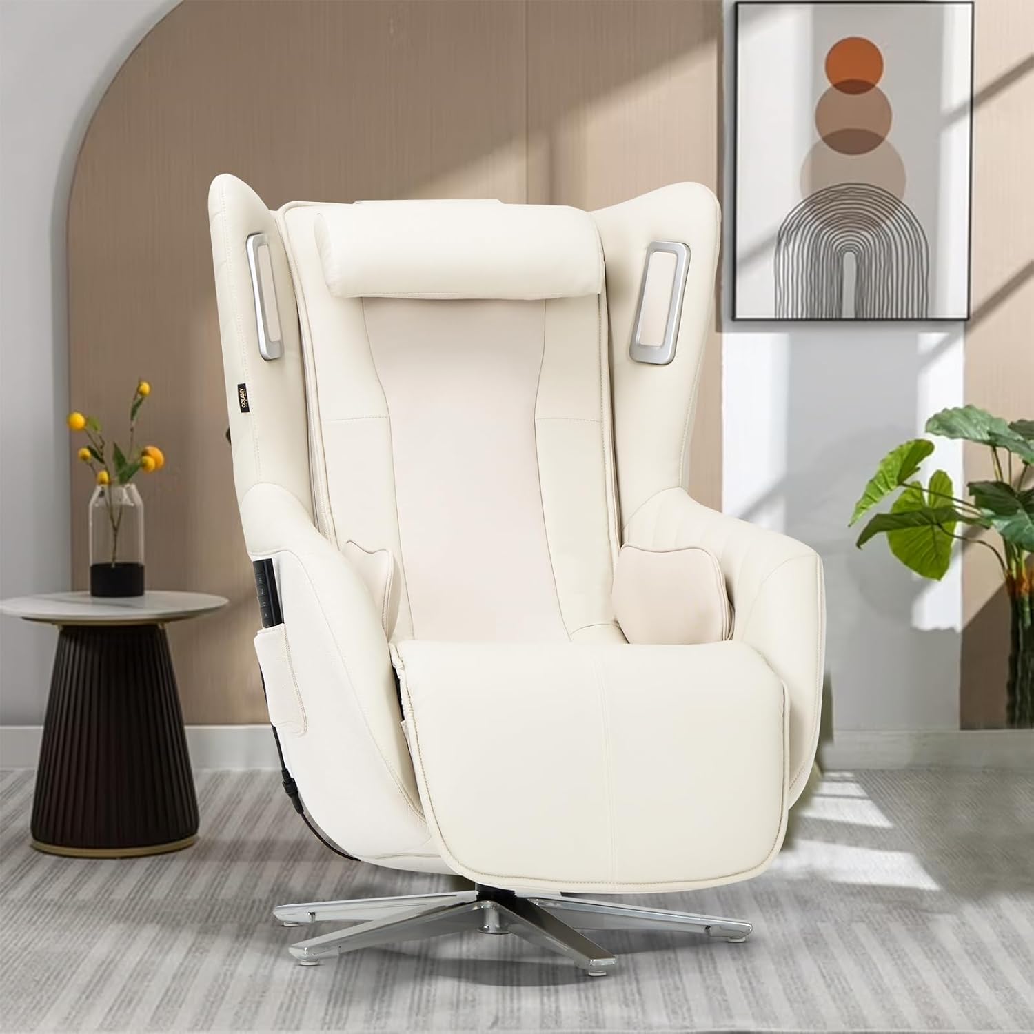 COLAMY Zero-Gravity Massage Chair | Massage and Leisure Dual-Use Chair,360° Swivel,Heat, Low-Noise 3D Bluetooth Speaker,Living Room, Bedroom(White