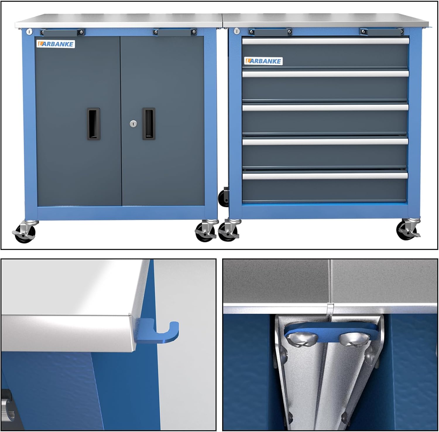 Combination Tool Chest with Lock,5-Drawer/7-Drawer/2 Door Tool Cabinet can be Interconnected,Rolling Tool Chest with Wheels and Padded Feet,with Stainless Steel Protective Film Countertop