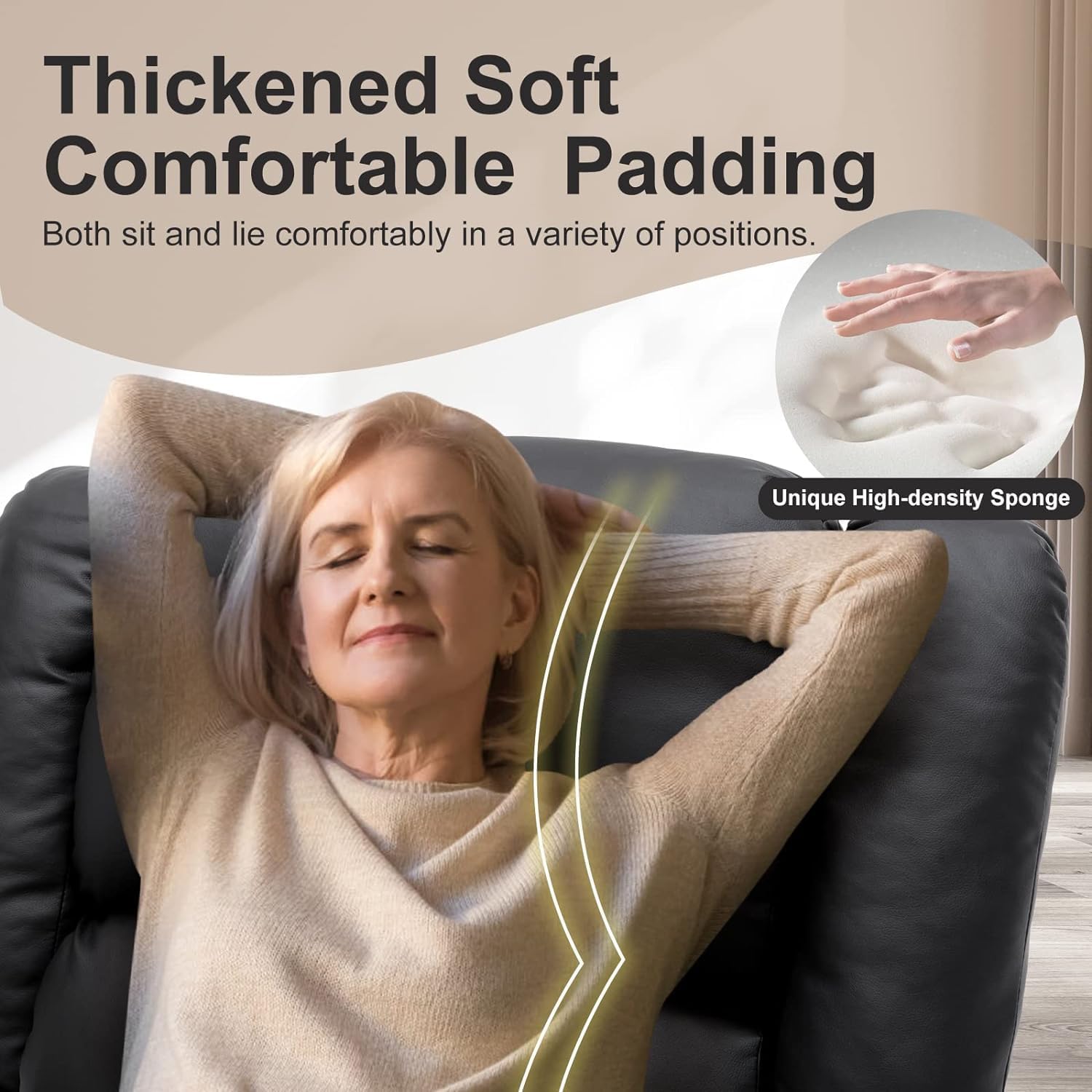 COMHOMA Power Lift Recliner for Elderly,Lift Chair with Heat and Massage,PU Recliner Sofa with Timing Function 2 Side Pockets,Cup Holders and Infinite Position for Living Room (Black)