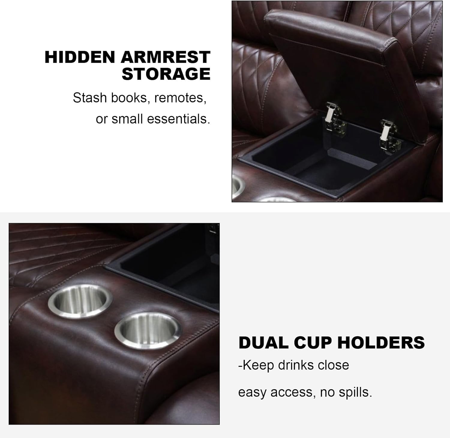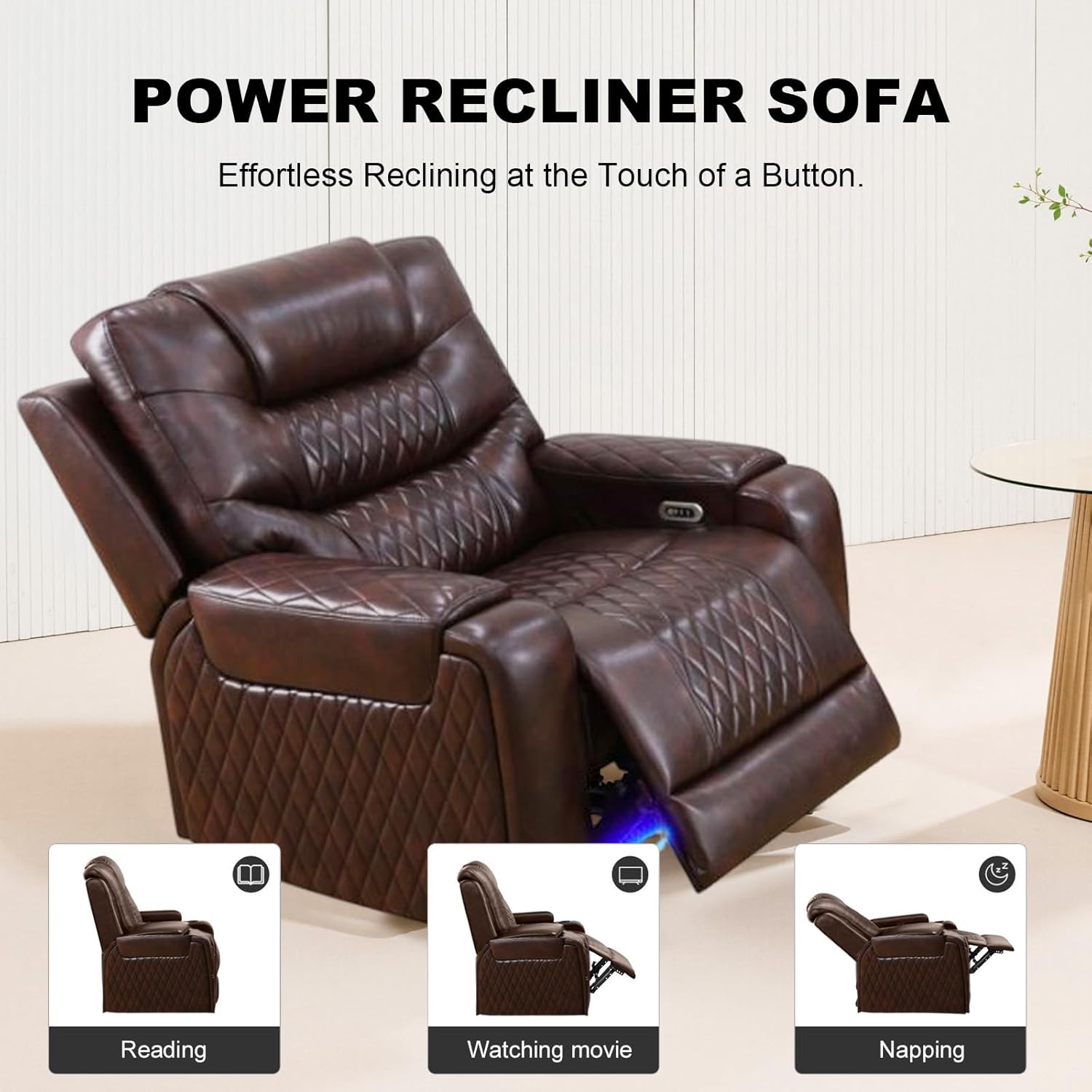 Power Living Room Furniture Sets,Electric Recliner Chair with LED Light,Sectional Sofa Loveseat with Wireless Charging,Spacious Storage, Cup Holeders,Brown,1