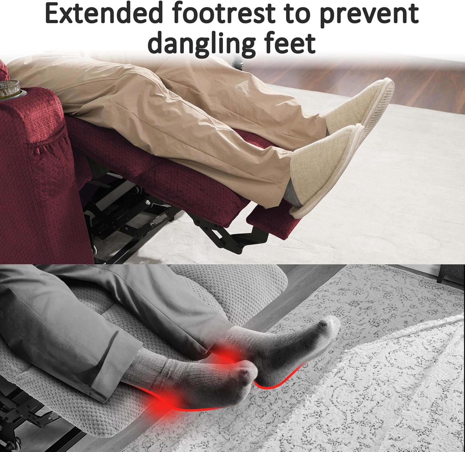 MCombo Large Power Lift Recliner Chair Sofa with Massage and Heat for Big and Tall Elderly People, 3 Positions, Cup Holders, and USB Ports, Fabric 7549 (Large, Burgundy)