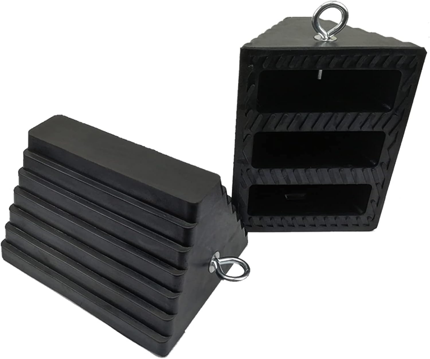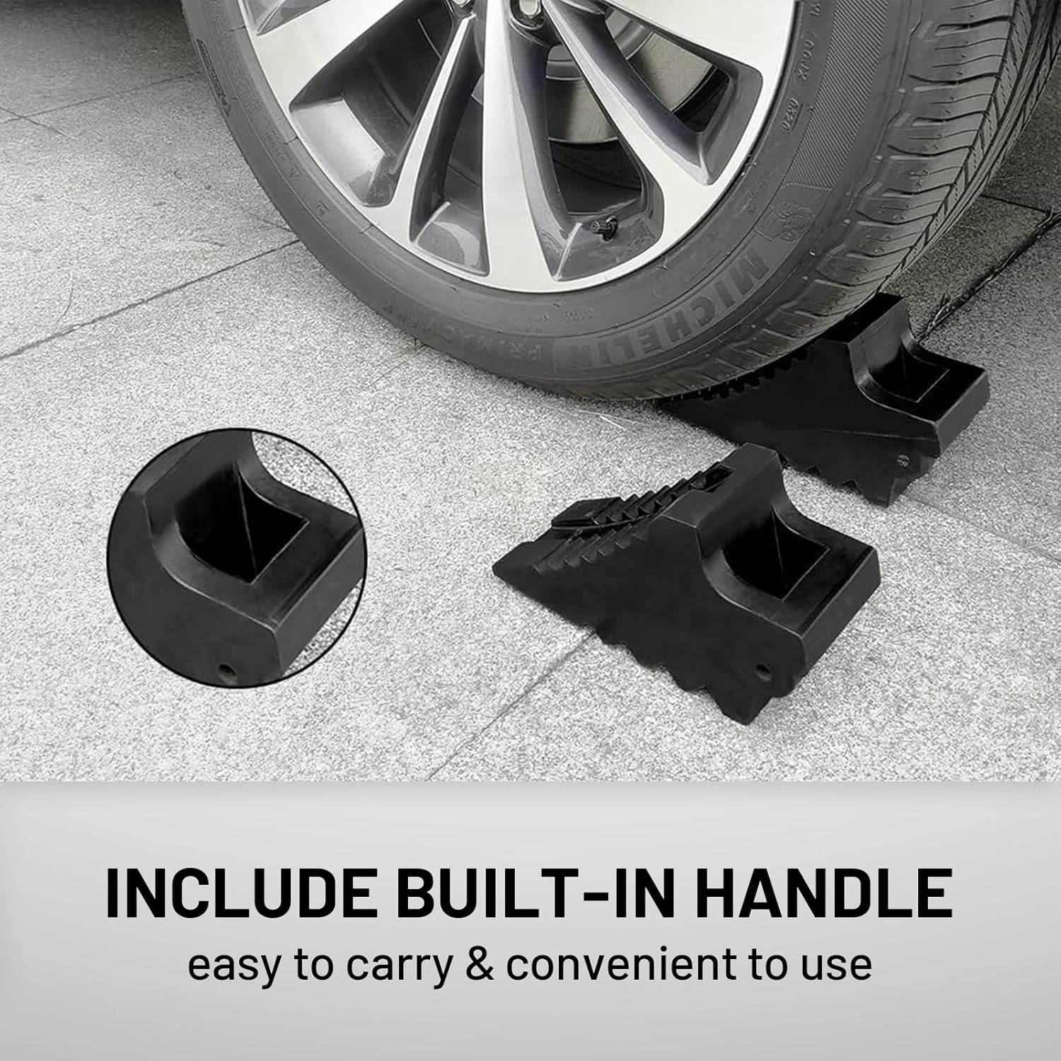 ROBLOCK Solid Rubber Wheel Chocks Heavy Duty Trailer Chock, G.V.W. Up to 8T, 4 Pack Black, 8.6" L x 3.7 W x 4.7" H for Car, Travel Trailers, RV, Truck, and ATV, for All Weather Use