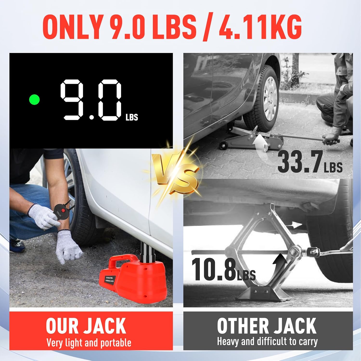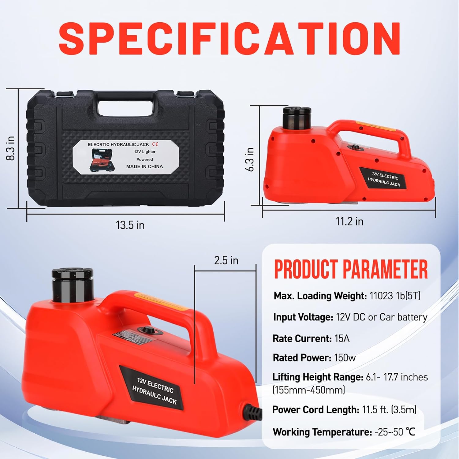 ROGTZ Electric Hydraulic Car Jack Kit 5 Ton 12V Ultra-Portable Auto Car Lift with 17.7 Inch Range for SUV Sedan Truck Repair Floor Jack for Tire Change Lightweight for Easy Storage