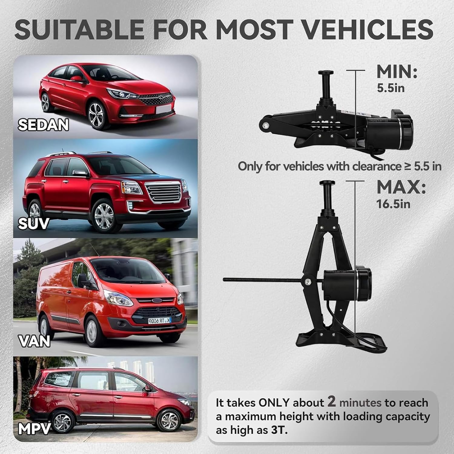 ROGTZ Electric Scissor Car Jack Kit 3 Ton 12V Portable Auto Car Lift with 17.7 Inch Range for SUV Sedan Floor Jack for Tire Change Roadside Emergency