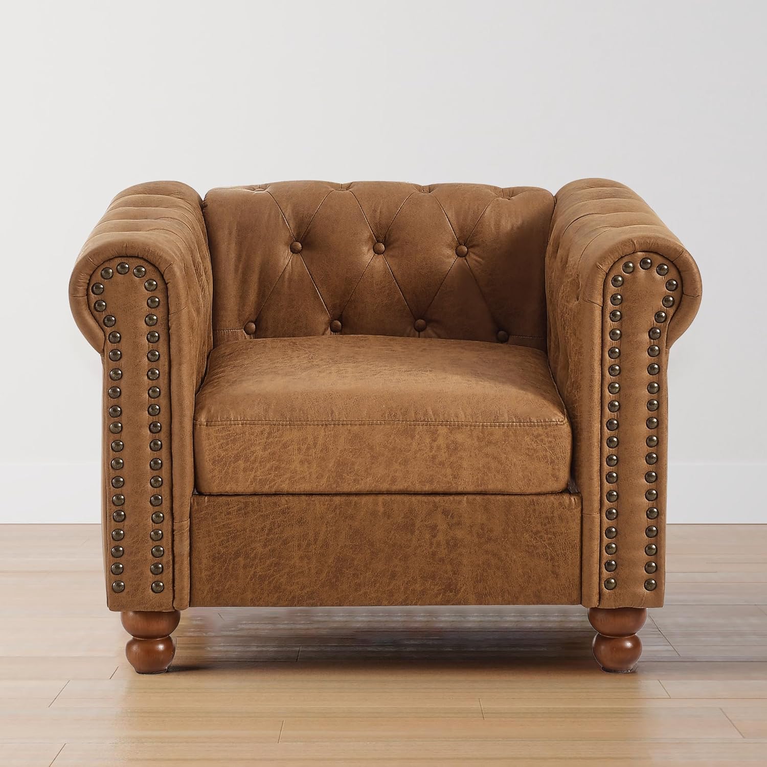 Chesterfield Sofa Loveseat Couch Chair Set with Scroll Arms and Nailhead
