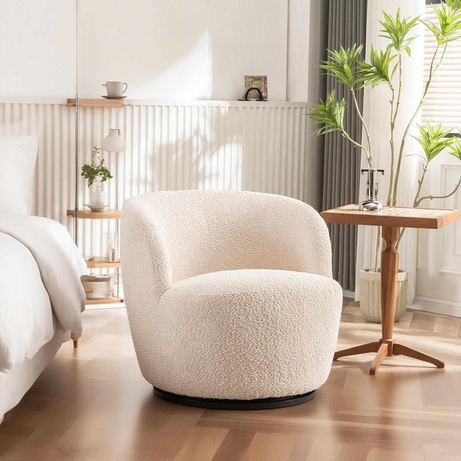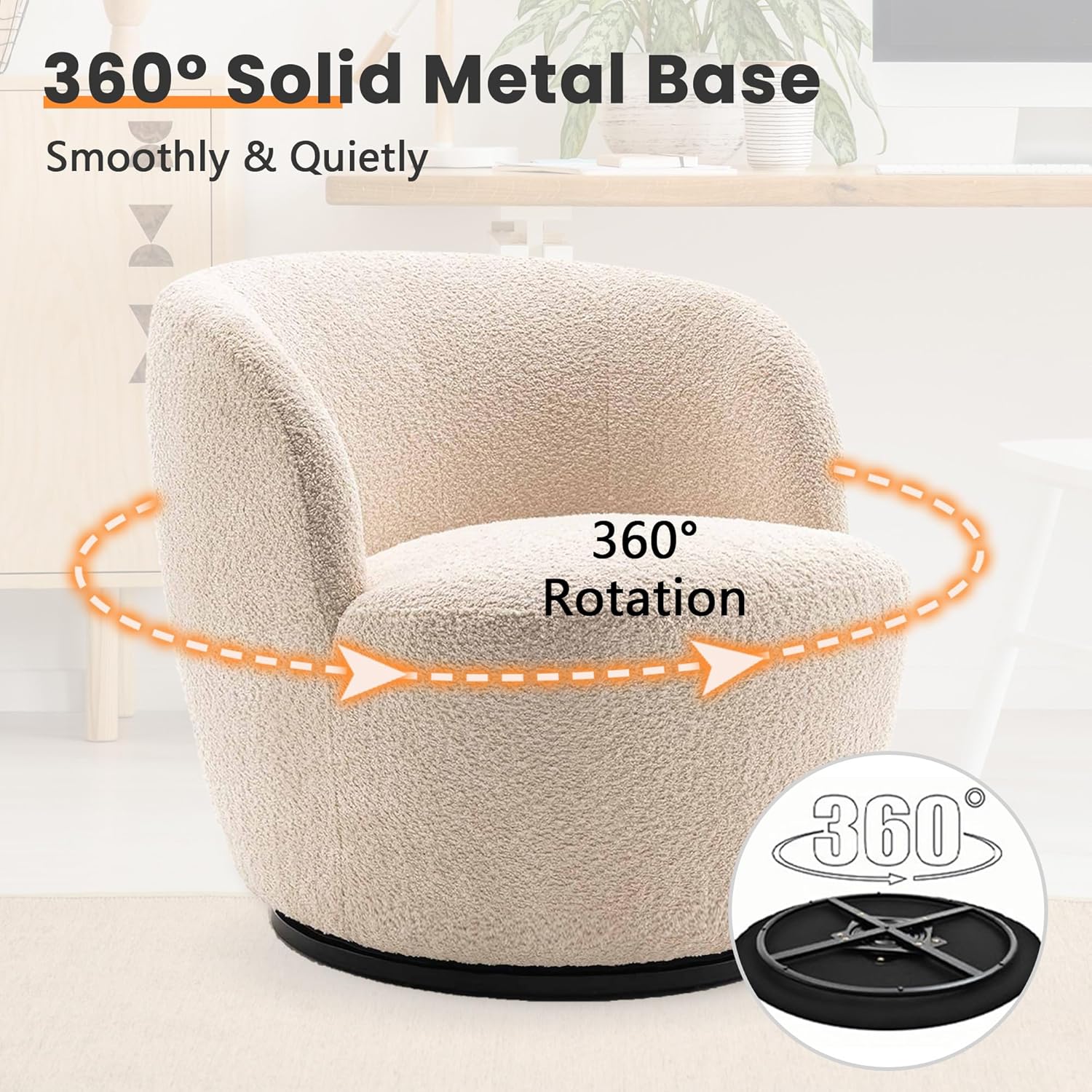 Rowill 30" Wide Swivel Barrel Accent Chair, Modern Upholstered Round Chairs with Curved Back and Soft Cushion, Boucle Fabric Padded Armchair Single Sofa for Living Room, Bedroom, Reading Room, Beige