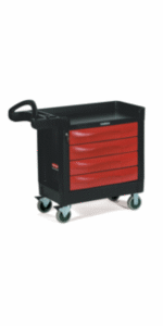 Rubbermaid Commercial Products Mobile Tool Work Center, 5 Drawers, 250 lb. Capacity, Black, for Warehouse/Garage/Cleaning/Maintenance