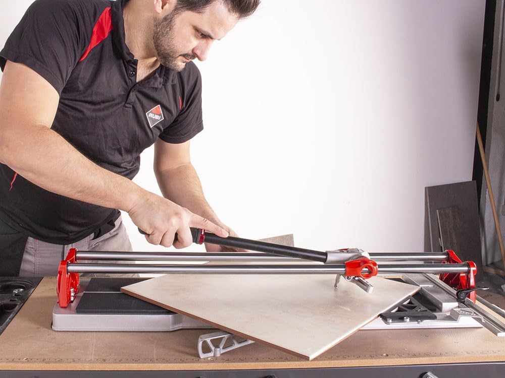 The SPEED-MAGNET range of manual cutters is intended for frequent cutting of all types of ceramic tile, making it ideal for professional ceramic tiler looking for a versatile and light-weight manual cutter for the most demanding jobs, perfect for straight cuts as well as diagonal cuts, providing greater cutting precision. Cutters have double solid 20mm steel guides, chromed and rectified with anti-corrsion treatment for greater resistance against twisting, offering better visibility during scoring and cutting and a mobile breaker that facilitates performing angular cuts. 62cm cutting length, 45cm x 45cm diagonal cutting length with a 3-15mm cutting height. With the millimetric lateral stop for repetitive cuts and its 45º square, it becomes a complete and functional cutter, for comfortable, high-quality work. On the other hand, the SPEED-MAGNET cutters stand out due to having a system fitted with the breaker assembly, which allows the operator to work with one hand. The MAGNET system locks the breaker, making it easier to score the ceramic tile and with better visibility. On the other hand, by simply moving the lever upwards, we set the breaker which will allow us to apply the 800 kg maximum power and obtain a clean and precise cut. All models in the SPEED-MAGNET range have some additions on the aluminium base to increase the support area and the holding of large pieces, with reinforced soft-grip handle, lateral stop for repetive cuts and 45° square. Another great feature of this range is the possibility of exchanging scoring to best fit each type of ceramic tile and to ensure the life of the scoring wheels. It comes with a 8mm scoring wheel, although is compatible with all scoring wheels in the RUBI range (6, 8, 10, 18 & 22mm) RUBI has always been a leading manufacturer of manual cutters for ceramics, offering users a choice that perfectly fits their needs. Supplied with protective carrying case.