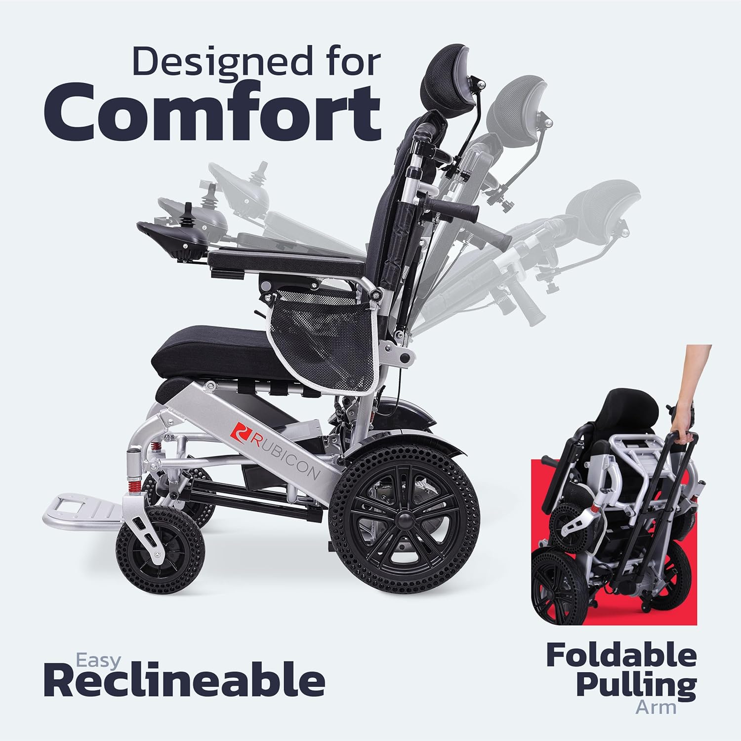 Rubicon DX11 - Reclining Foldable Electric Wheelchairs for Adults - Longest Range 25 Miles of Freedom: Airline Approved Deluxe Electric Wheelchair with Dual 12AH Lithium Batteries, 600W Motor (Model7)