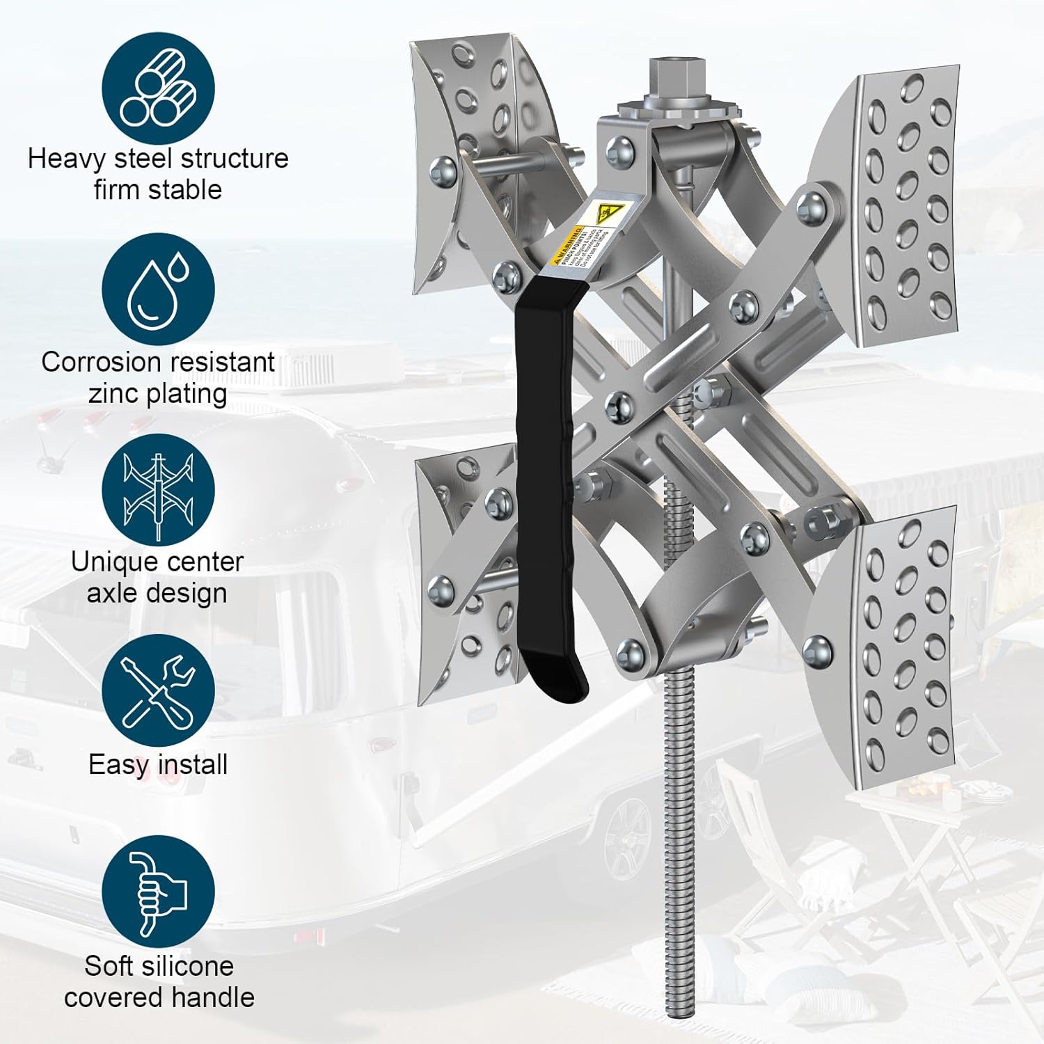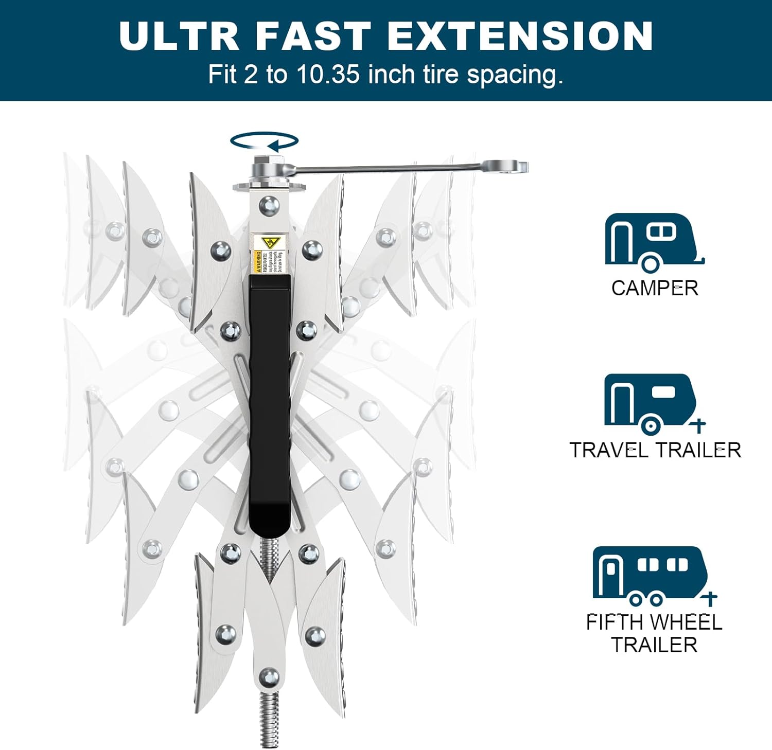 RV X Chocks Wheel Stabilizer for Travel Trailers, 2 Pack RV X-Shaped Wheel Chocks Open 2'' to 10'', Camper RV Tire Chock Stabilizers Locking Chock with Wrench for Travel Trailer Accessories
