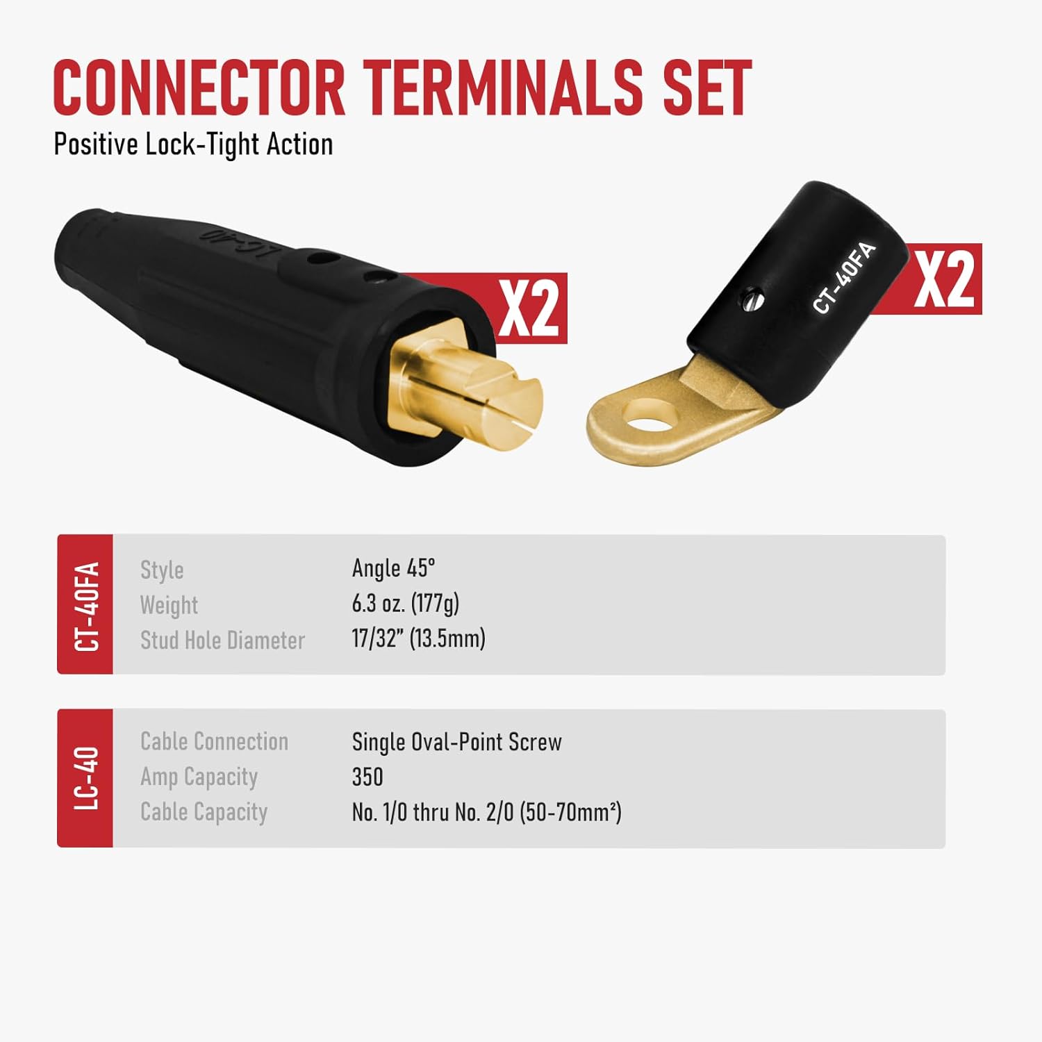 RX WELD 2PCS CT40-FA, 2PCS LC40 Male Cable Connector, for Cable Capacity: 1/0 thru 2/0 (50-70mm²)