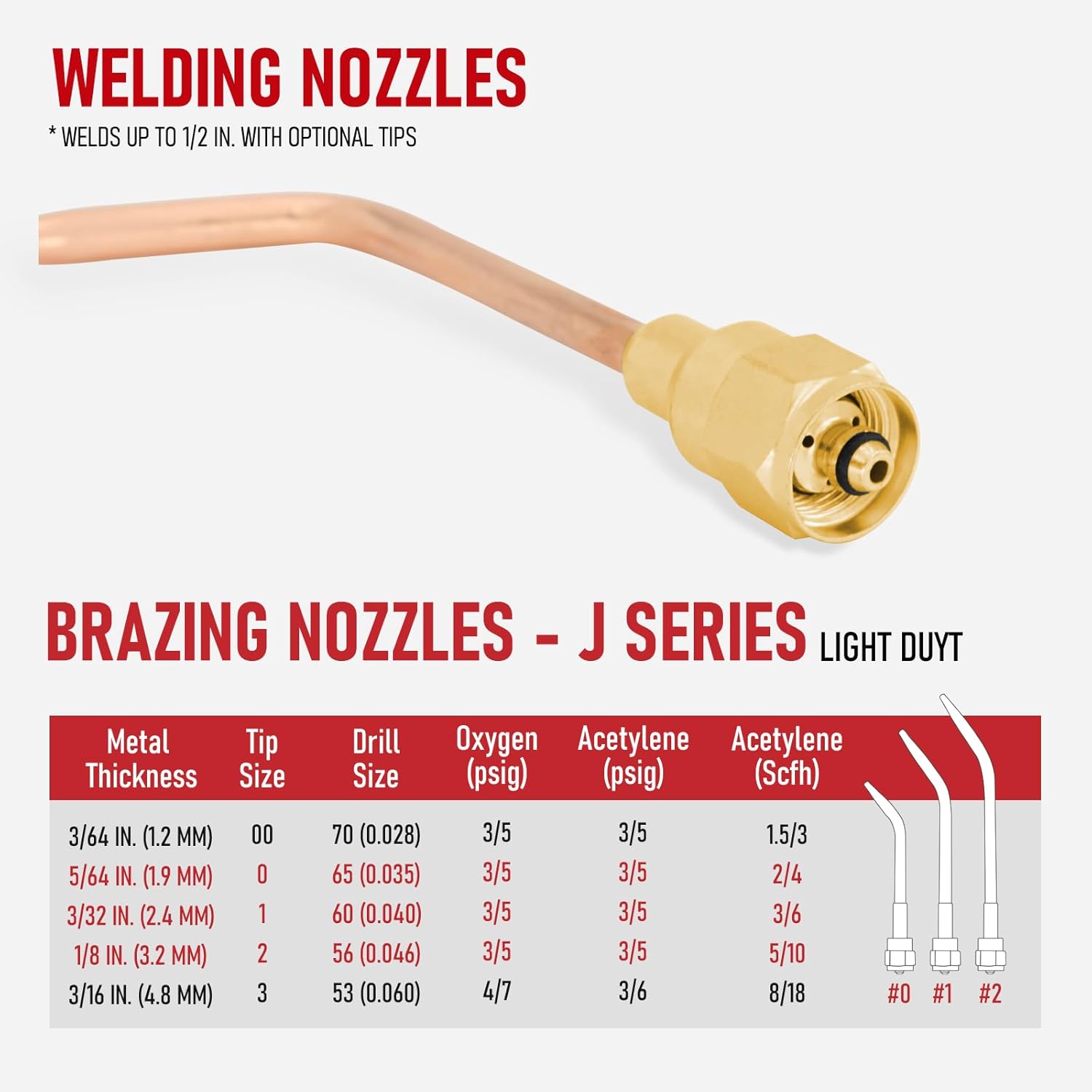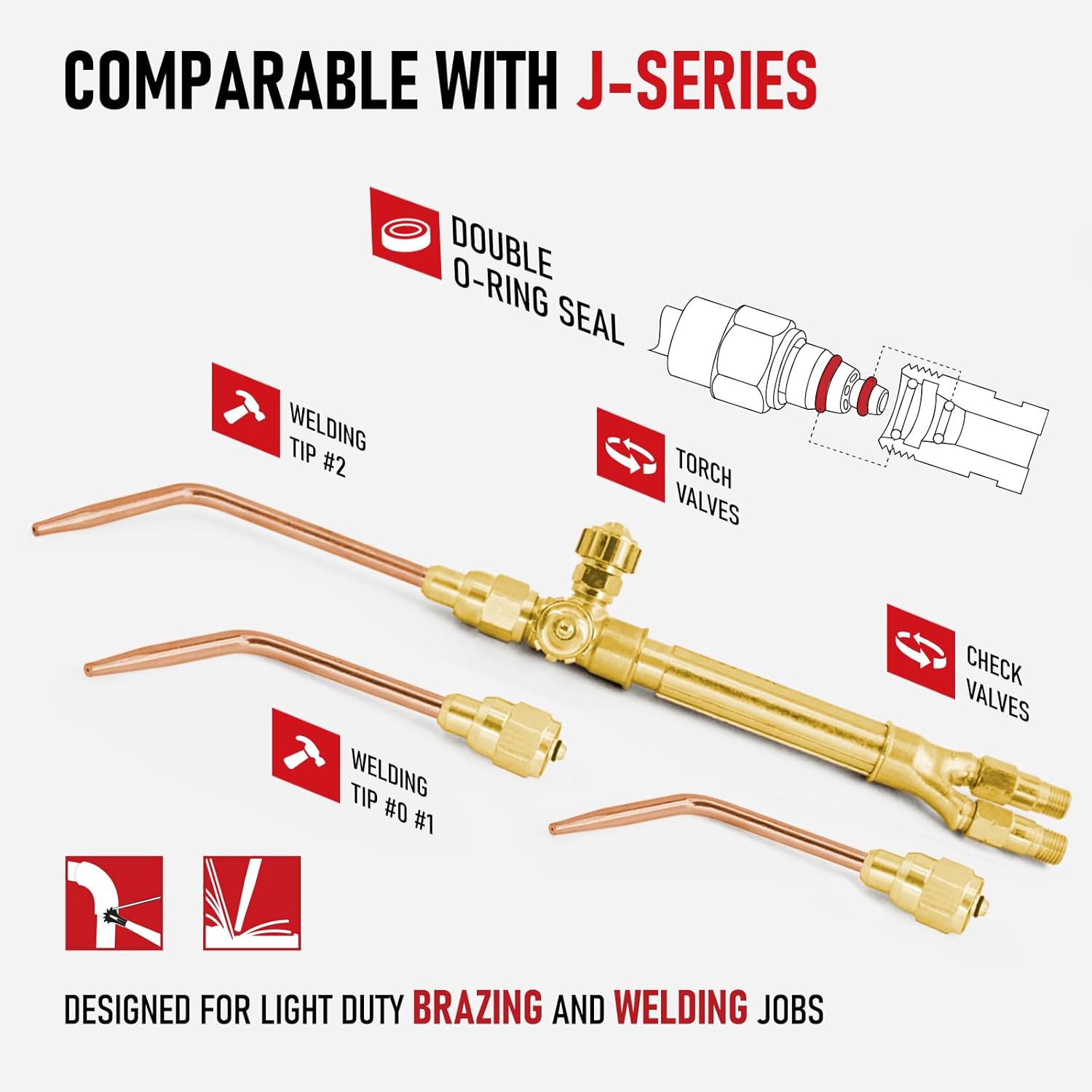 RX WELD Ligth Duty Welding/Brazing Torch Kit, Handle Compatible with V-Series "J" +3 Welding Tips