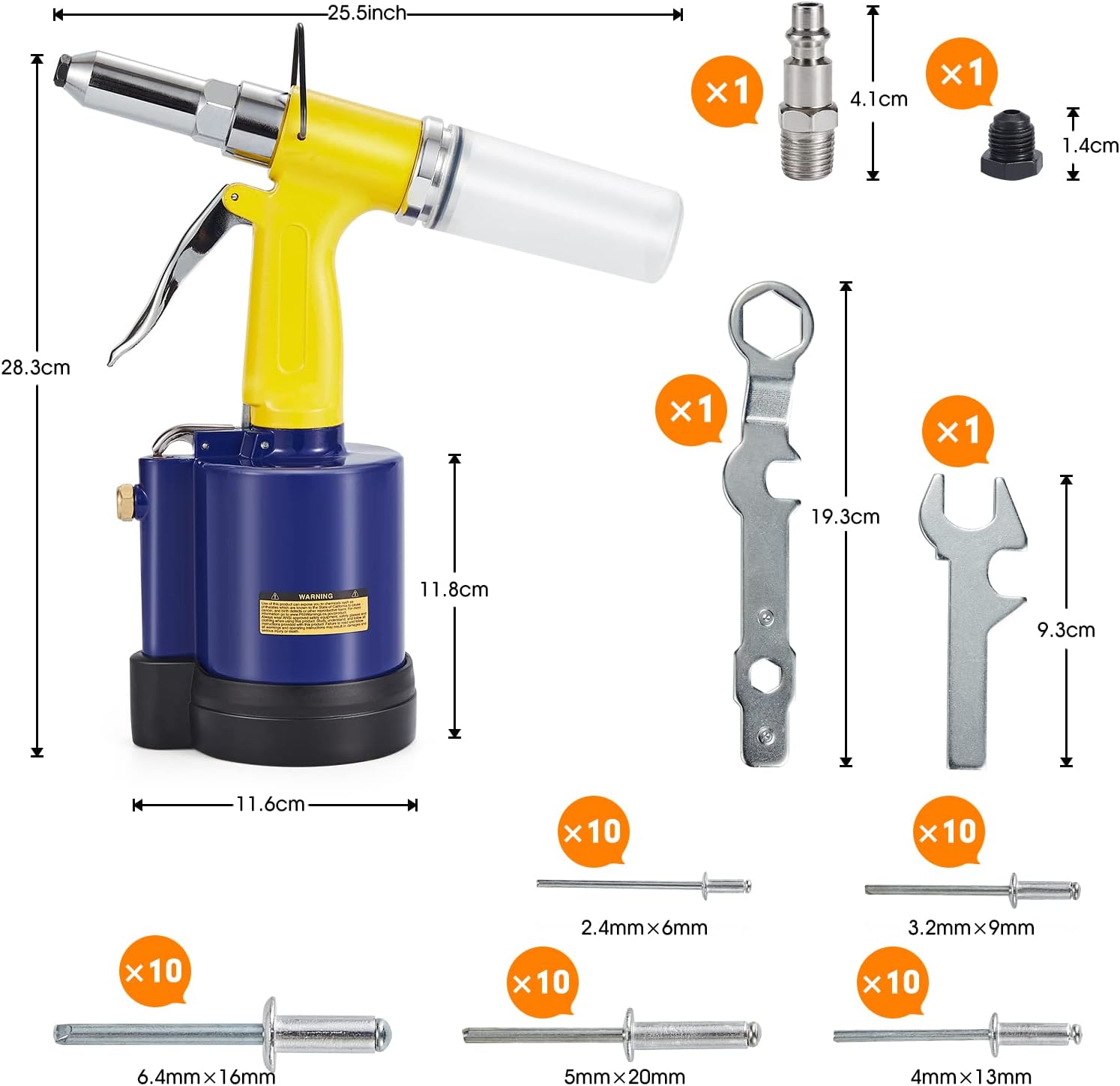 RZX Pneumatic Tool Air Riveter - 3/32", 1/8", 5/32", 3/16" and 1/4" Capacity with 50pcs Open End Blind Rivet (1)