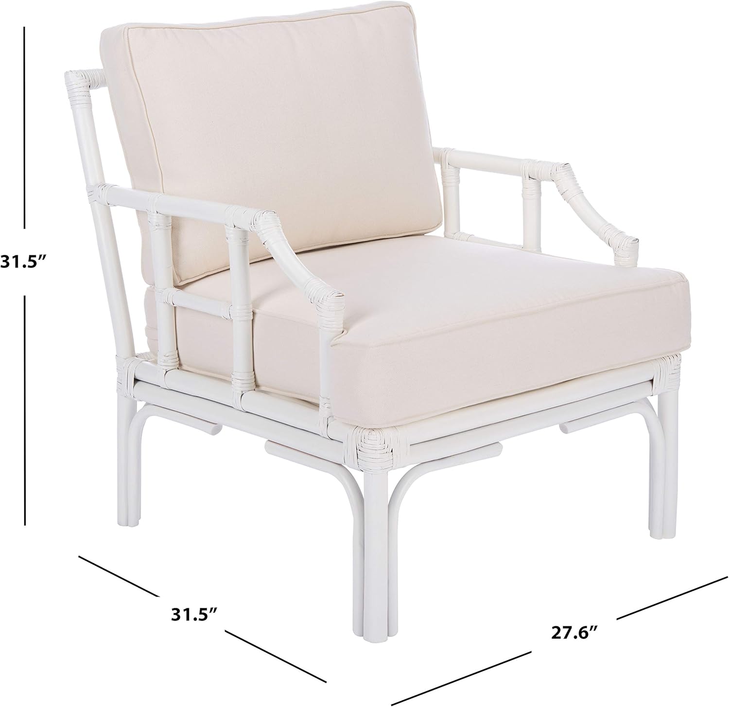 SAFAVIEH Home Kazumi Coastal White Rattan Cushion Accent Chair (ACH6508A)