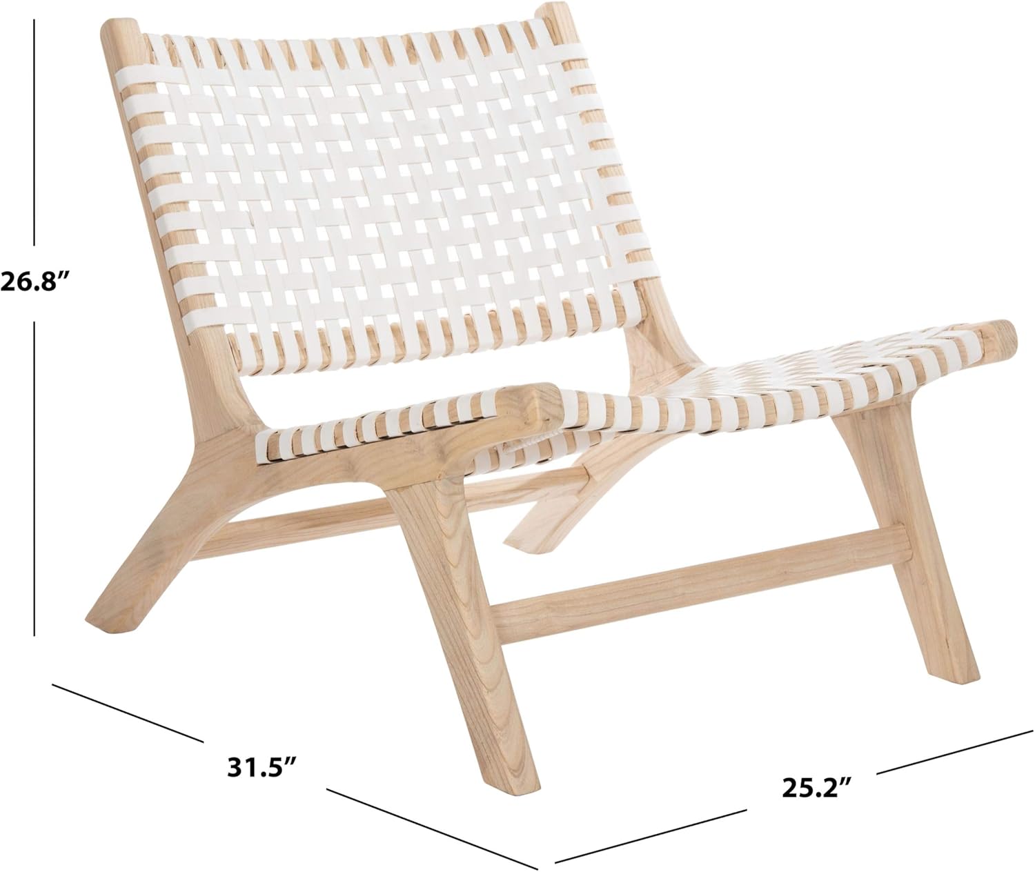 Safavieh Home Luna Natural and White Leather Woven Accent Chair
