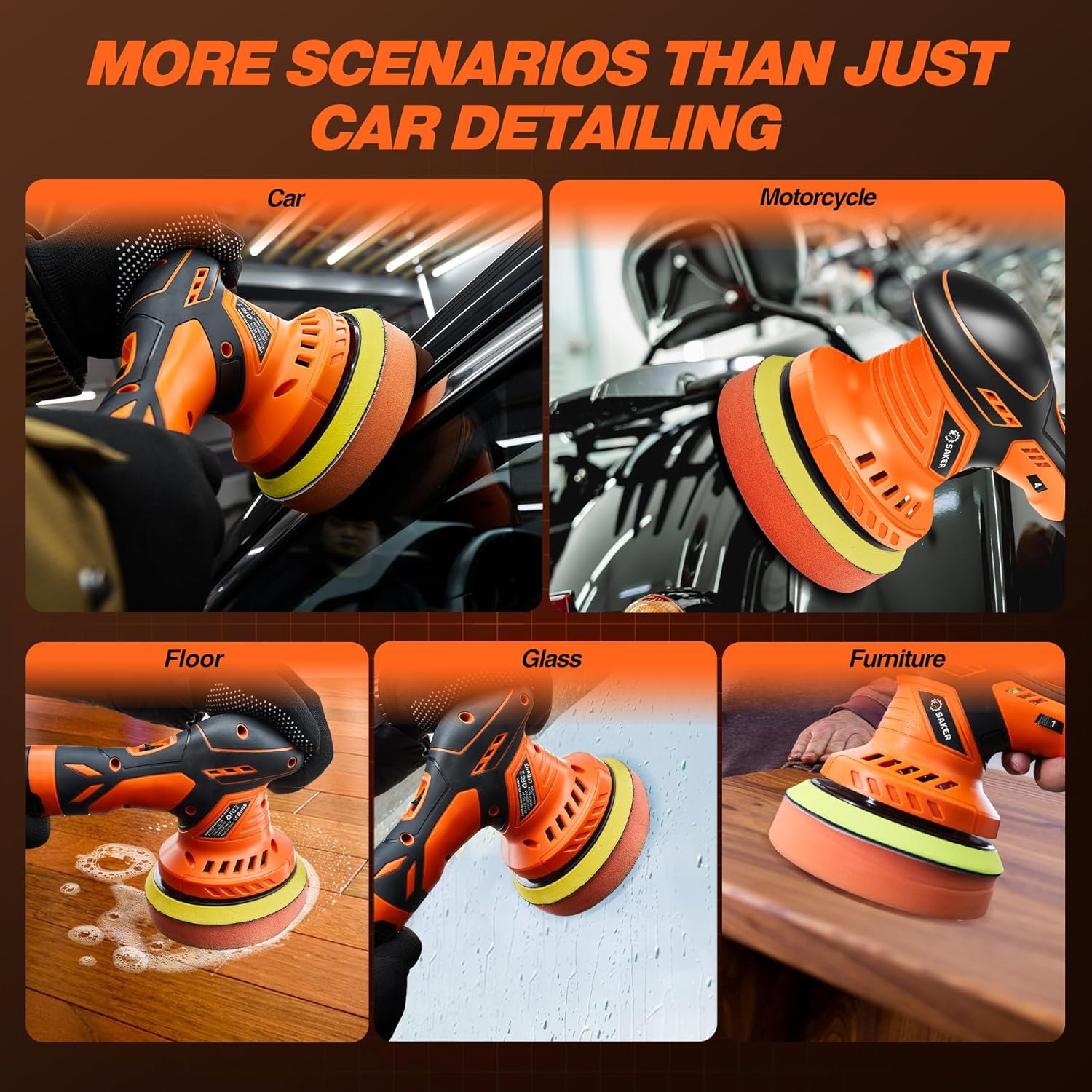 Saker Cordless Buffer Polisher, 6 Inch Fast Charging Portable Car Polishing Kit with 2PCS 12V 2000mAh Batteries, Polisher for Car Detailing Polishing Waxing (Orange, Buffer Polisher+2 Batteries+1 Bag)