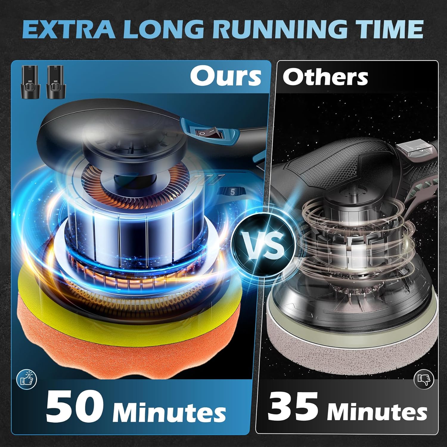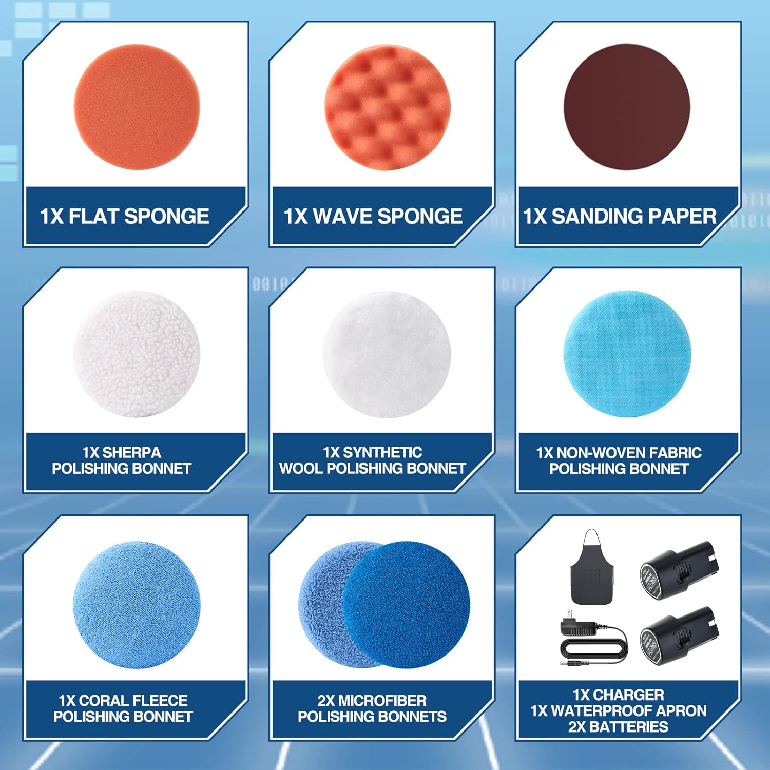 Saker Cordless Car Buffer Polisher - 6 Inch Portable Waxer Machine Kit with 2x2000mAh Batteries & 6 Variable Speed, Extra 16 PCS Attachments, Polisher for Car Detailing, Scratch Removing