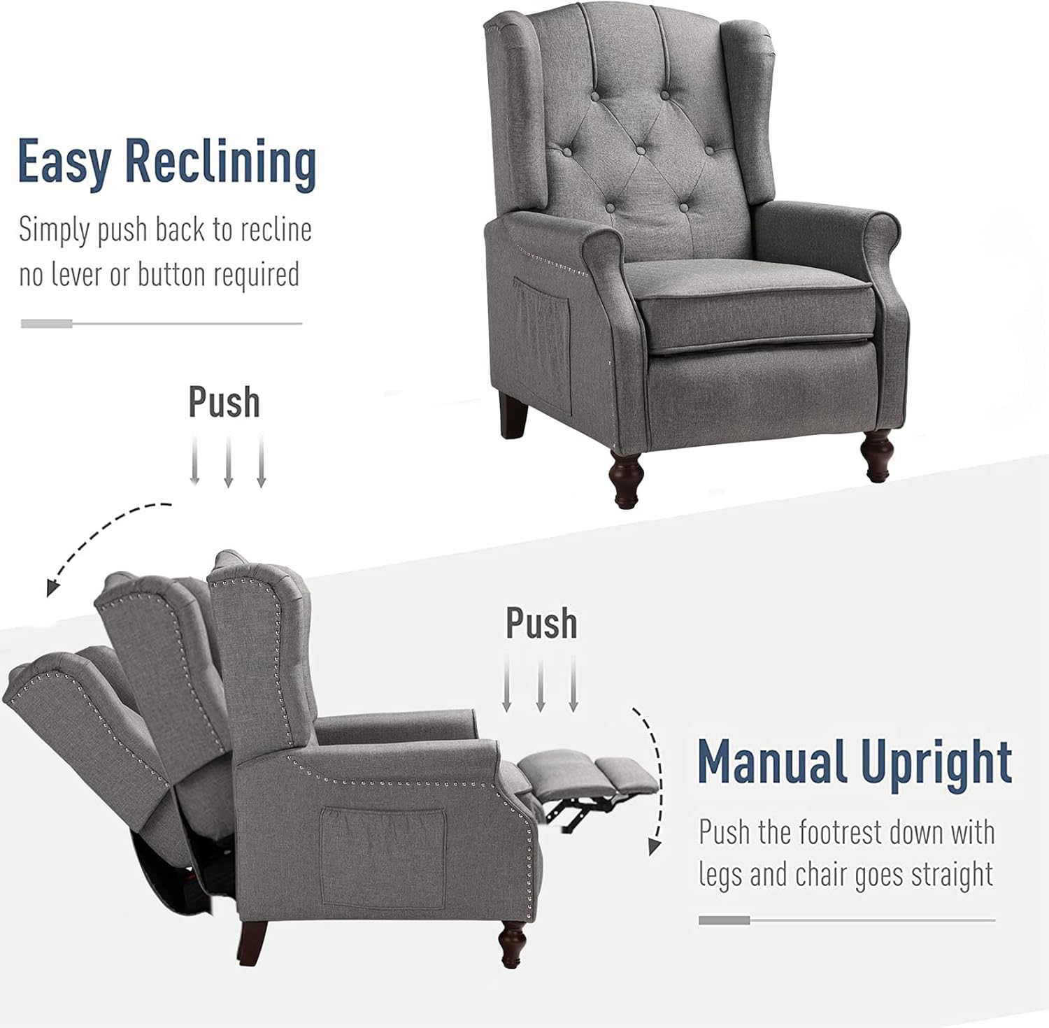 SAMERY Wingback Recliner Chair with Massage and Heat, Accent Chair Push Back Recliner Tufted Arm Chair for Living Room Bedroom, Reading Lounge Sofa Seat with Remote Control, Adjustable Backrest