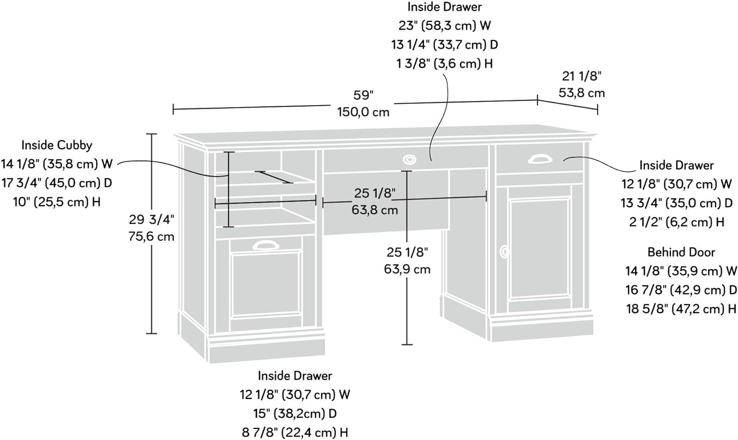 Looking for a little inspiration when it comes to working on your big projects and papers? We’ve got you covered! Find motivation and more When you add beauty and charm to your home office or work space with this executive desk from the barrister lane collection. Its spacious top surface provides you with room for ALL YOUR must-have desk essentials – laptop, cup full of pens, collection of notepads and even a lamp! The Pencil drawer and small storage drawer both open and close on smooth metal runners for easy access storage of miscellaneous office supplies. It also features open storage that includes an adjustable shelf that you can move to different heights to create flexible storage options for items of all sizes. Behind the framed panel door is a hidden storage area that includes an additional adjustable shelf for you to store items that you prefer stay out of sight. Its large file drawer with full extension slides holds letter-size hanging files so you can keep your important papers organized. Finished on all sides in a rustic salt Oak, this executive desk is just what your office needs. Quick and easy assembly with patented T-lock drawer system.
