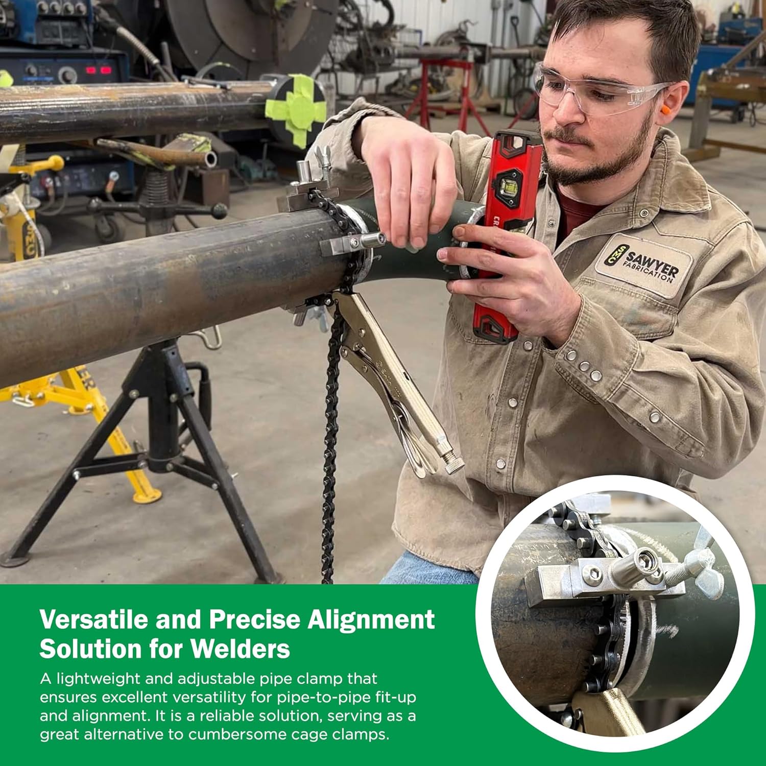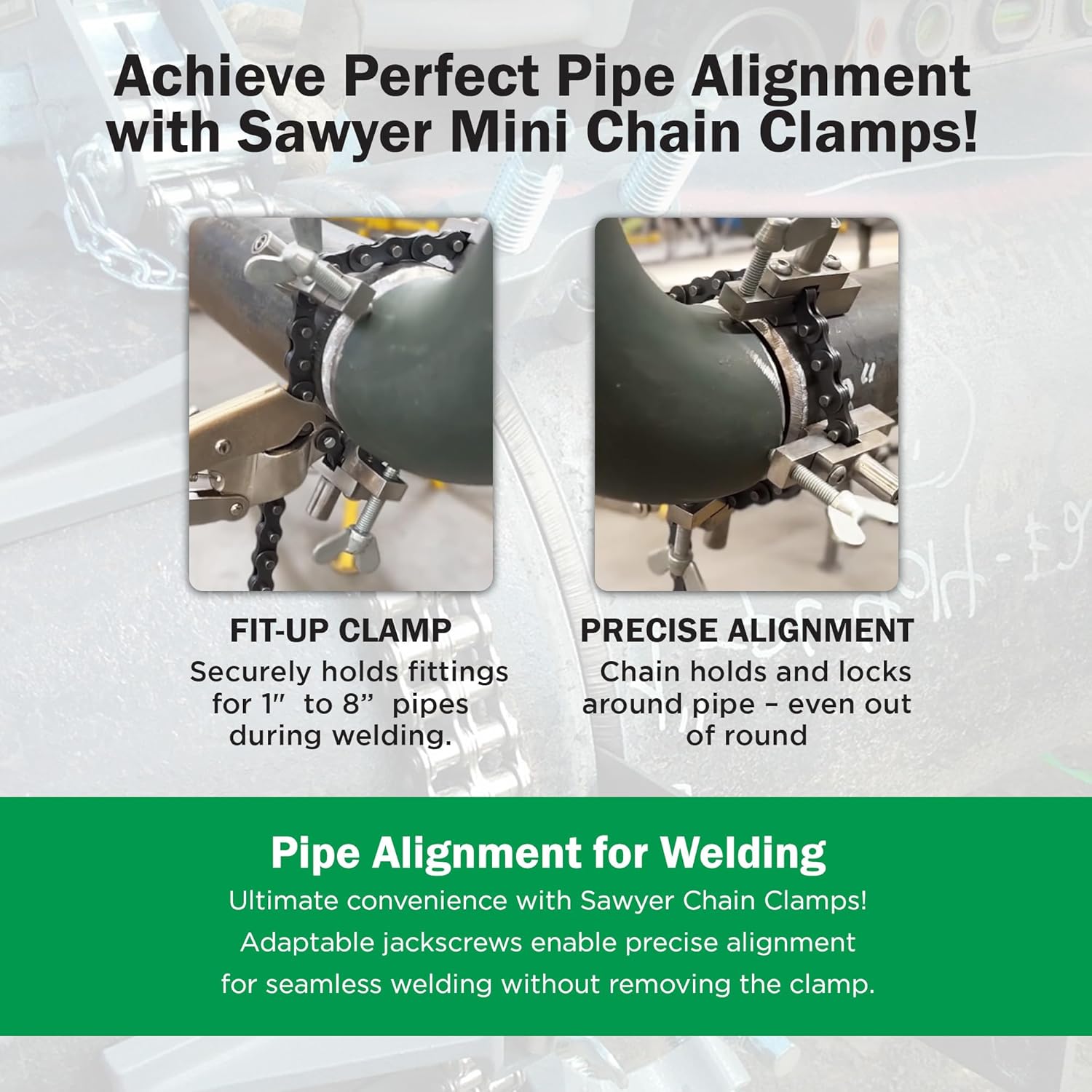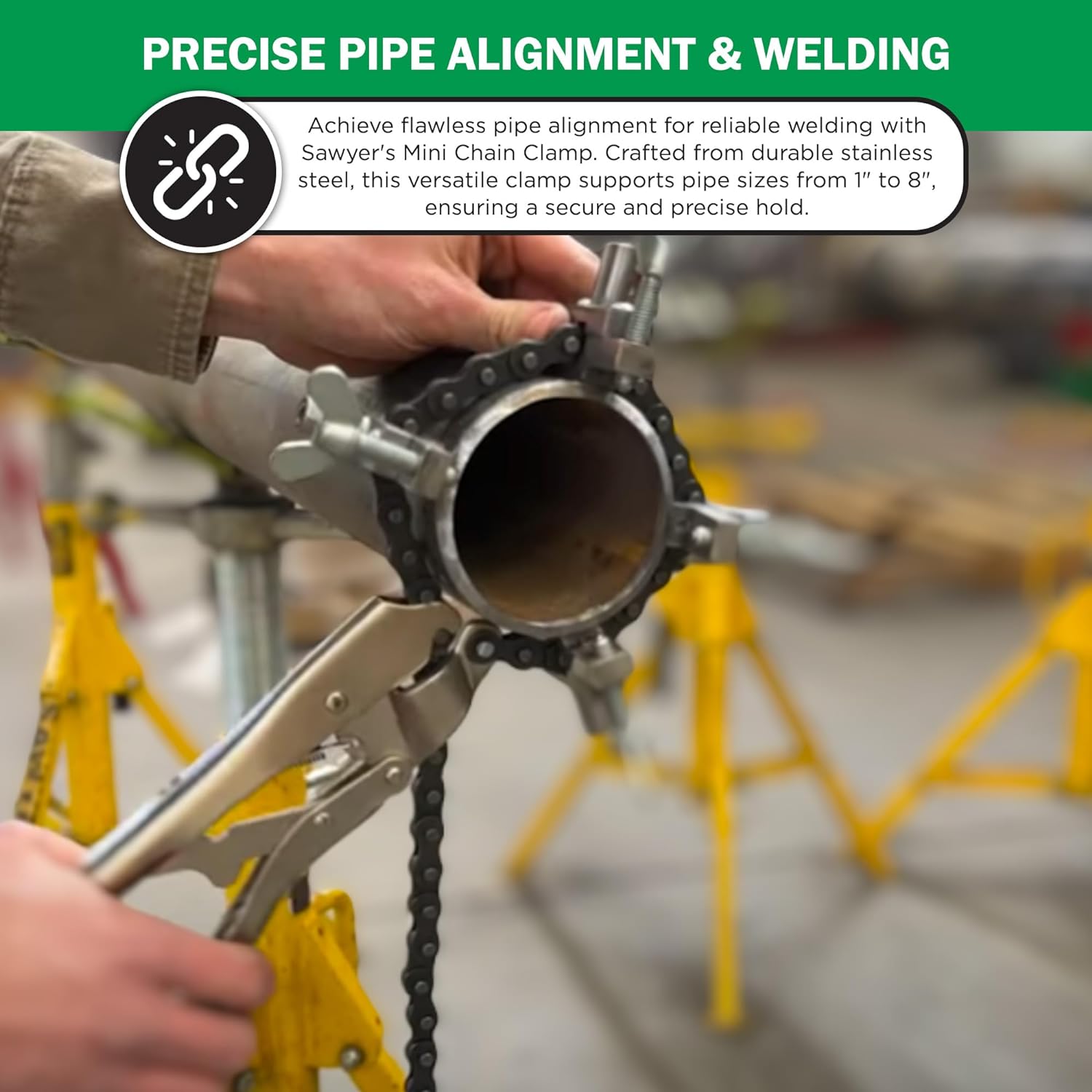 Sawyer - Mini Chain Clamp - Heavy Duty Pipe Vise for Welding, Repair, Stainless Steel Tools, Quick Lock Connector, Rigid, Bench Accessories, Grip, Wrench, Threader, Fitter, Links - 1”-8” Diameter
