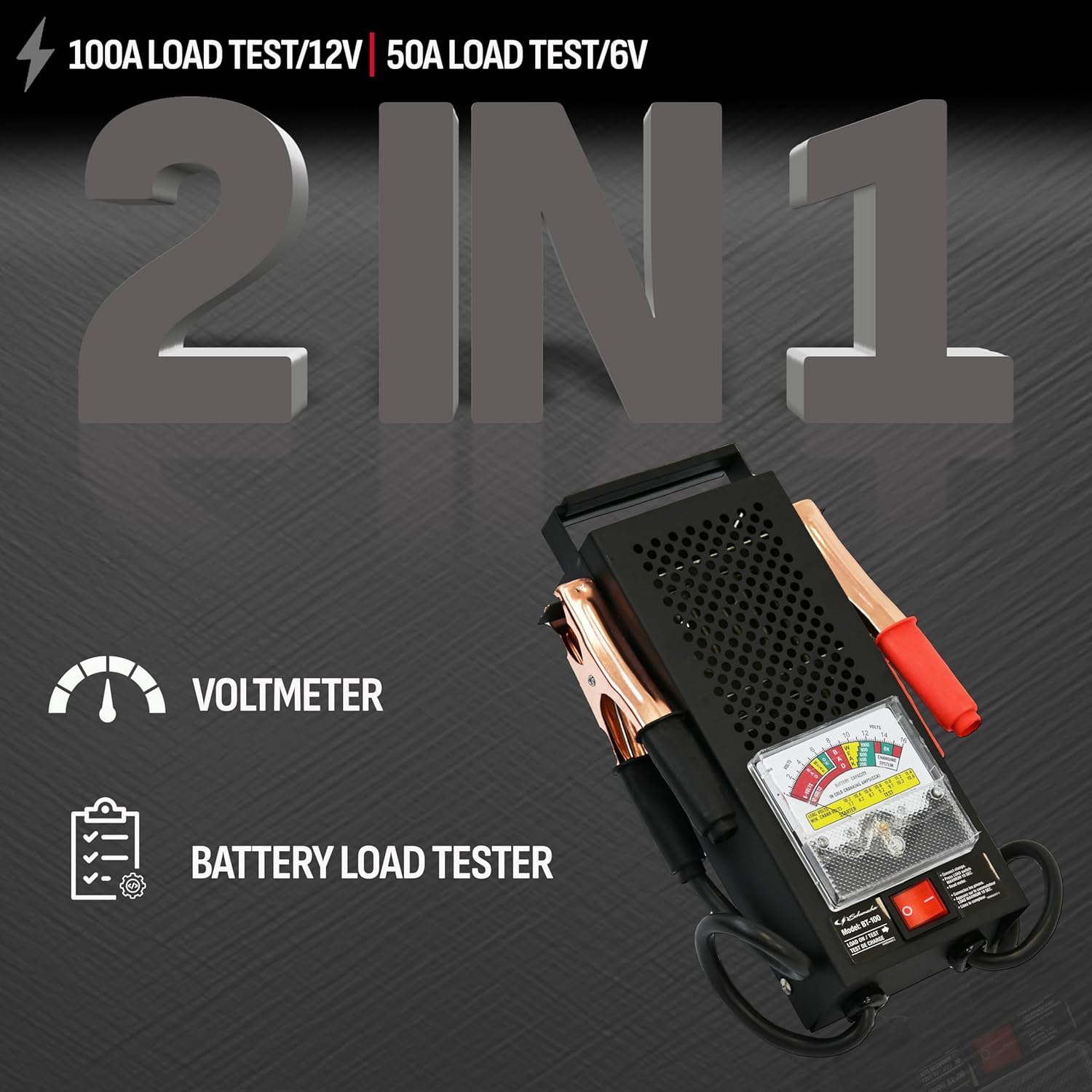 Schumacher Electric 100A Car Battery Load Tester and Voltmeter, for Batteries Up to 1000 Cranking Amps, Charging System Diagnosis, for 6V/12V Power Sport, Automotive, and Marine Batteries, BT-100