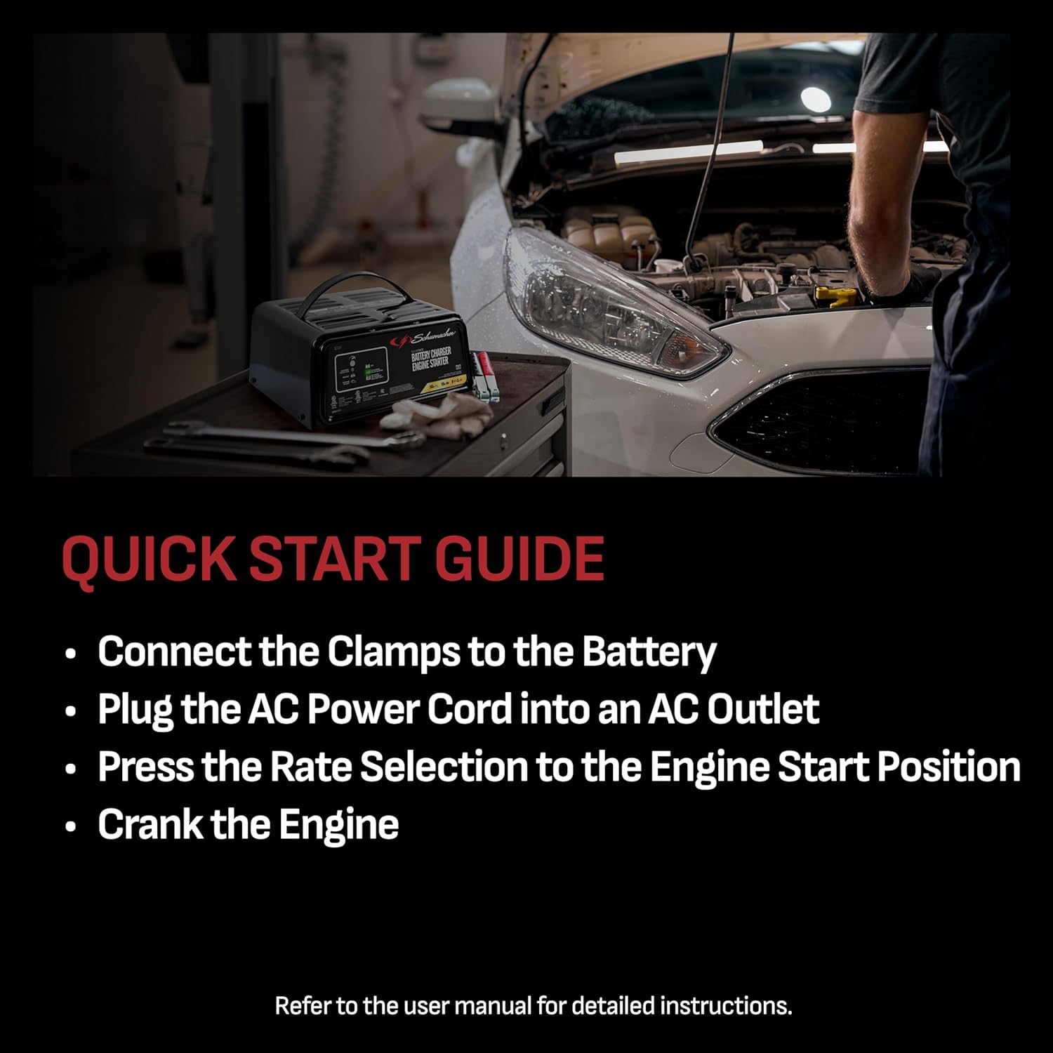 Designed with both professionals and everyday drivers in mind, the SC1361 is easy to use, durable, and reliable—perfect for charging or starting dead batteries and maintaining battery health over time. With fully automatic operation and microprocessor-controlled technology, it delivers smart, multi-stage charging and float mode monitoring to extend battery life.