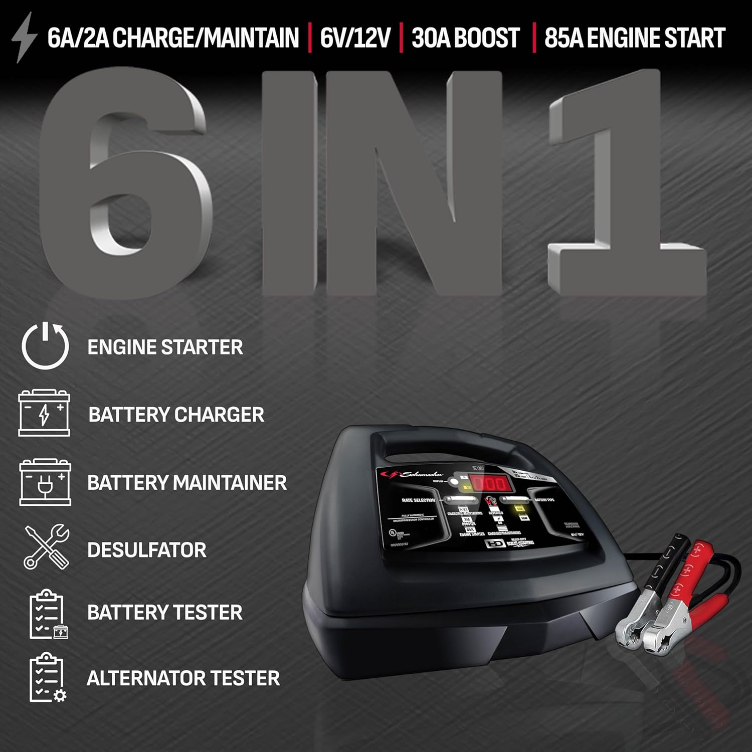 Schumacher Electric 6A Car Battery Charger and 85A Engine Starter, 6-in-1 Solution, Maintainer, 30A Boost, for 6V/12V Power Sport, Automotive, and Marine Batteries, SC1307